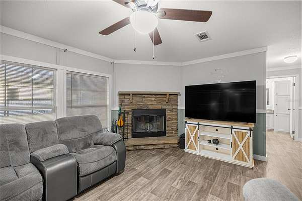 - Ceiling Fans(s), Eat-In Kitchen, Open Floorplan, Primary Bedroom Main Floor, Split Bedroom, Stone Counters, Thermostat, Walk-In Closet(s)