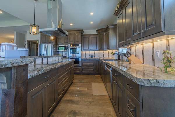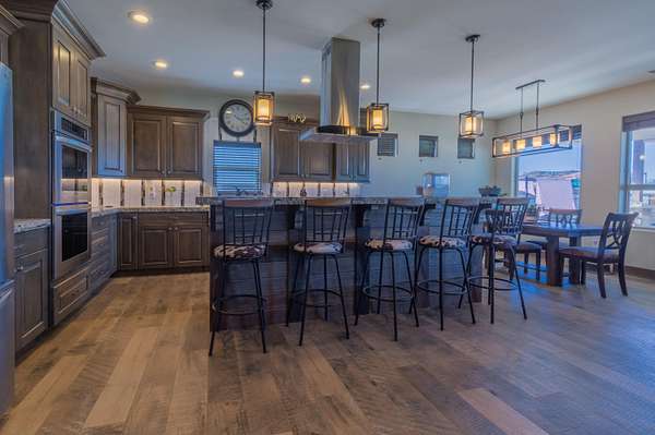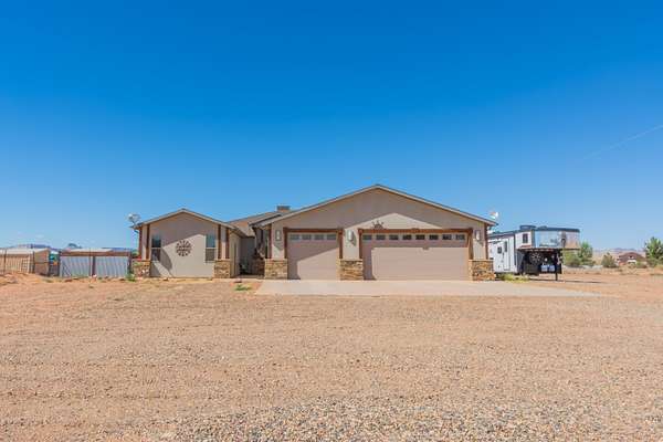 Equestrian dream on nearly 4 acres in the heart of red rock country! This spacious 4-bedroom, 4-bath single-level ranch-style home sits at the base of the Grand Staircase-Escalante and offers the perfect blend of comfort and adventure. Built with multi-generational living in mind, the home features three primary suites, two with private entrances, making it ideal for guests, in-laws, or rental potential. Inside, enjoy an expansive open-concept kitchen with granite countertops, double ovens, a built-in ice maker, and custom tile floors throughout. Outside, you'll find fully fenced horse pastures, six covered stalls with corrals, a tack shed, wash rack, and a large RV pad with 50-amp service. The oversized 3-car garage, ATV shed, and steel-fenced backyard add both function and security.
