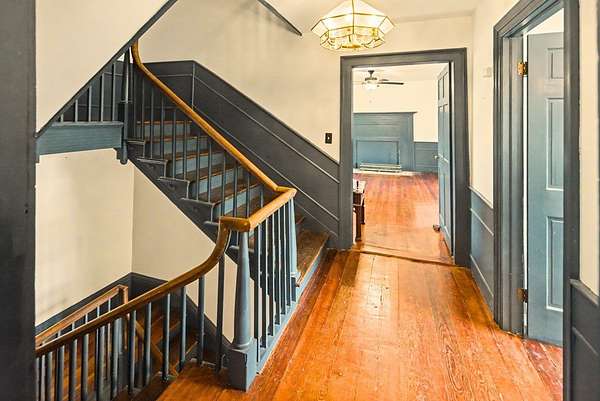 Step back in time at River Side-Circa 1850s, a stunning 2 1/2 story Federal period home rich in history and craftsmanship. This timeless residence showcases original doors, intricate mantels, heart pine flooring, classic wainscoting, and a beautifully detailed staircase that reflects the artistry of a bygone era. Modern efficiency meets historic charm with newly installed solar panels. Situated on nearly 12 acres of waterfront property, this fenced estate-complete with 3 gated pastures-is currently an active sheep farm with a self-watering livestock system underway and 2 wells in place. The property offers exceptional versatility with a 24x35 two bay metal building, a garage/workshop with 220 amp service, a stable, and a run-in shed. Additional structures include a two-story building once know as Buffalo Landing Country Store, a quaint log cabin, and an original smokehouse. Enjoy immediate access to a nearby boat ramp and 610 acres of wildlife management land just across the road. A rare opportunity to own a piece of history ready for your vision of farm and waterfront living. Clarksville and South Boston both offer shopping, dining, medical and entertainment. Home sold AS IS.