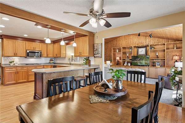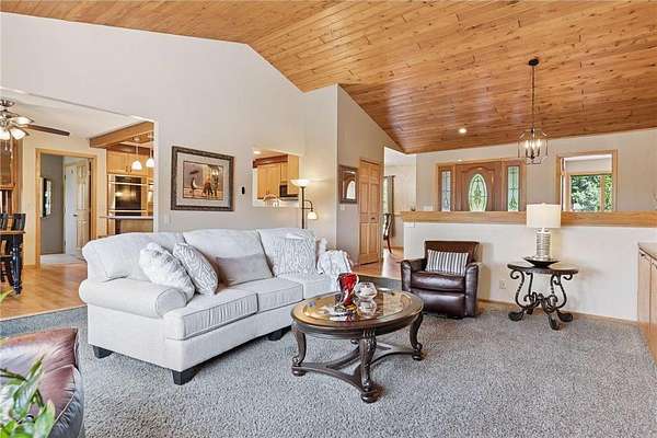 Looking for one-level living, acreage, and privacy in Woodbury?? Look no further! Welcome home to a thoughtfully designed property that blends comfort, functionality, and timeless charm. Vaulted ceilings and beautiful natural woodwork create a warm, inviting atmosphere, while custom built-ins add both character and everyday convenience. The main level offers a seamless layout with a formal dining room for special gatherings and an eat-in kitchen that opens directly to the living room, perfect for both entertaining and daily living. A sunroom overlooking the backyard provides a peaceful retreat and easy access to the back deck for effortless indoor-outdoor living.