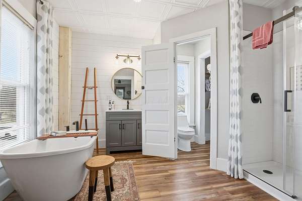 This stunning two-story home has been completely transformed with extensive updates throughout-truly nothing has been left untouched. Step inside to a gorgeous eat-in kitchen designed for both everyday living & entertaining, flowing seamlessly into a dining area and a large, open living room filled with natural light. A 1st floor bed & bath offer flexibility. The 2nd level features 2 generously sized bedrooms, full bath, & laundry. Outside, you'll fall in love with the expansive wraparound porch w/ concrete floor, ideal for relaxing and taking in the peaceful surroundings & a 2 car att garage. NEXT is the finished (heated & cooled) 60 x 80 outbuilding that opens the door to endless possibilities. It's perfectly suited for hosting large gatherings, celebrations, game nights, family events, a home gym, or even a private showroom. Car enthusiasts will appreciate the space for showcasing and storing vehicles, while hobbyists and craftsmen can create the ultimate workshop/studio. The finished loft offers addt'l flexible space for a home office, guest retreat, or creative workspace. This impressive building adapts to your lifestyle, and the opportunities are truly unlimited. All of this sits on 3.3 beautiful acres, providing space while still being conveniently located just 15 minutes from Intel and 25 minutes to Easton. A rare opportunity that combines modern updates, exceptional outdoor amenities, and an unbeatable location. Addt'l 20+ acres available