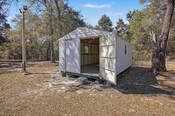 Looking for some peace and quiet? Need some room to spread out? You found your spot. This 2021 home is located on a 3.5 acre lot just west of Tallahassee. The entire lot is fully fenced, with dusk to dawn lighting around the property. Well and Septic are also 2021. The property comes with a huge pole barn equipped with an enclosed work space that is insulated, powered, and has climate control. There is another separate storage unit in the back that is also power equipped. The home itself has all the modern amenities. A large open concept kitchen and living area, large rooms with walk in closets, plus a laundry room with extra space. Washer/Dryer and all furniture included. A must see!!