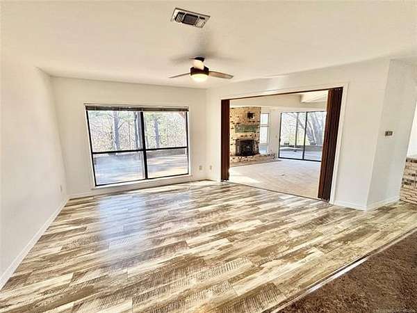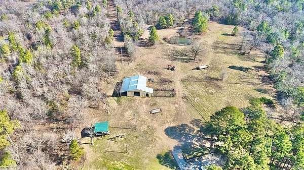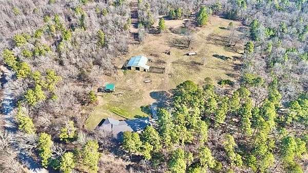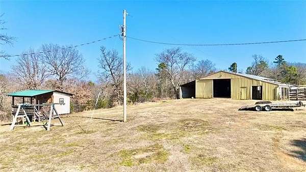 Welcome to this exceptional multi-use property in Heavener, Oklahoma, offering the perfect blend of privacy, functionality, and scenic beauty. Situated on 17 acres with Black Fork River frontage, this well-maintained property provides endless opportunities for recreation, agriculture, and peaceful country living - all while being conveniently close to town. The full brick home features 3 bedrooms, 2.5 bathrooms, a metal roof, and a wood-burning fireplace, creating both durability and warmth. Designed with an open-concept layout, the home offers abundant natural light through beautiful windows throughout and a unique step-down living room that adds character and charm. The kitchen is equipped with stainless steel appliances, and the home includes a two-car garage. This is a truly special residence - pictures do not do it justice. Outside, the property continues to impress with a 60' x 40' shop building, ideal for equipment, hobbies, or storage, as well as a playhouse complete with a slide and swing, perfect for family enjoyment. The land is cross-fenced for agricultural use, features a concrete driveway, and includes a mix of open pasture and wooded areas, offering excellent hunting opportunities. A pond provides a great spot for fishing and adds to the property's natural appeal. Just past the pond behind the barn, you'll find a deer blind that will remain with the property. With beautiful views, river frontage, and a secluded setting that still offers quick access to town, this property truly has it all - a rare opportunity to own a versatile, turn-key piece of land in a highly desirable area