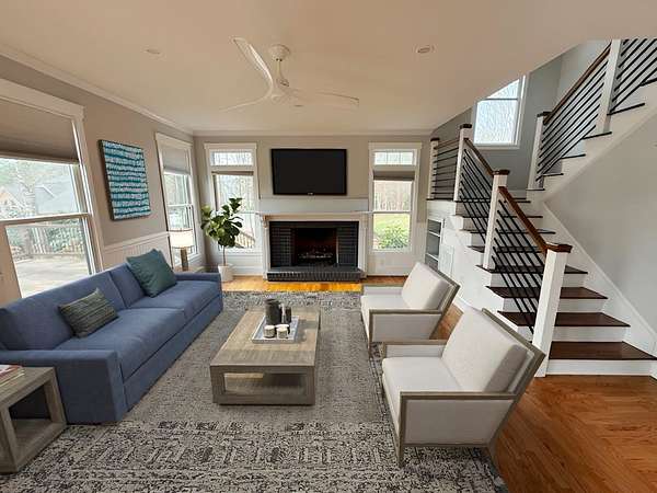 - 2 Story Foyer, Cable Available, Countertops-Solid Surface, Fireplace, Gas Logs, Open Floor Plan, Walk in Closet