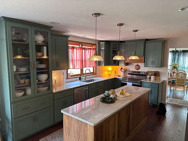 THIS HOME A BEAUTY AND WILL NOT LAST!!!!. Perfection is what you will see as you pull into the driveway. Beautifully manicured yard and a beautiful wrap around porch. Main floor has a custom kitchen that every woman would love to have. Complete with a coffee bar, glass cabinets for precious keepsakes, and stainless steel appliances and quarts countertops. (refrigerator does not stay). Dining room has 2 large windows for plenty of light and a view of the outside beauty. Living room is very inviting with a woodburning fireplace. Main level also has a family room, 1/2 bath and laundry room that opens to the garage. Mail floor has engineered flooring throughout. Upstairs you will see the 4 bedrooms with fully bath and a master bath for master bedroom. Another stairway will lead you up to the 3rd floor with a fabulous 32x10 room with endless possibilities. Basement is 1622 sq. feet with a garage door that opens to a covered area, rock wall and patio area great for get togethers. At only $395,000.00, this is a steal. Give me a call before it is gone.