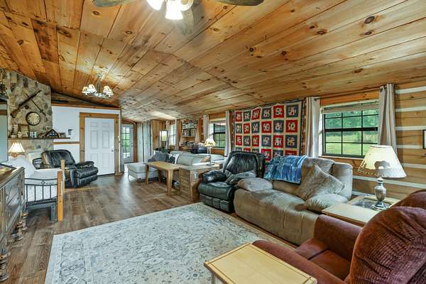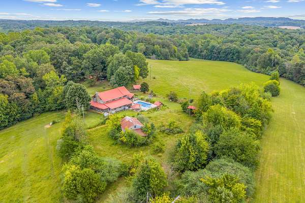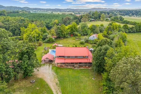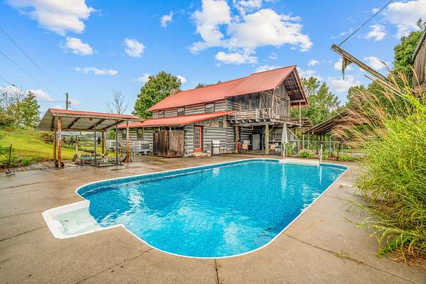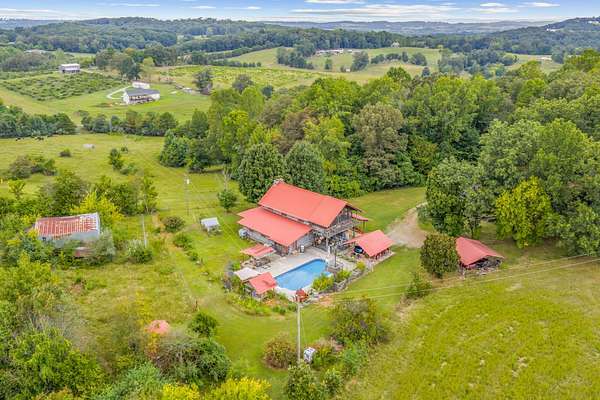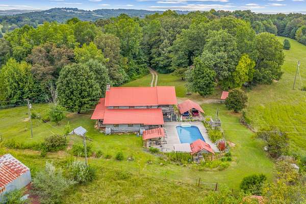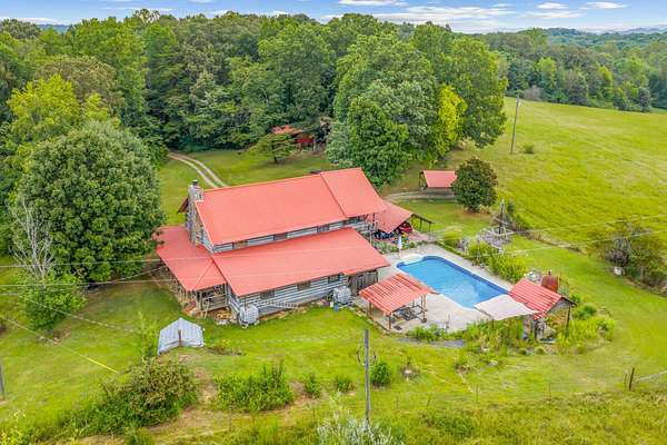 MOTIVATED SELLER will help with closing expenses and/or interest rate buydown with acceptable offer. This custom-built log cabin on 25 acres is conveniently located midway between Knoxville and Chattanooga. Features include saltwater inground pool and a large detached workshop/barn with a car lift and woodworking equipment which will convey. Surrounded by untouched woods AND fenced open meadows, the property awaits your animals and gardens. The cabin itself exudes warmth and craftsmanship, built from sturdy logs that have stood the test of time. Inside, the large, stone wood-burning fireplace invites you to sit back and enjoy the quiet comfort of rustic living. Sunlight pours through the windows, revealing views of all four seasons in every direction. Beyond the home, the land offers endless possibilities. This property isn't just a house on land; it's a place to put down roots and create a homestead where you can grow your own food, raise animals, and live in harmony with nature.