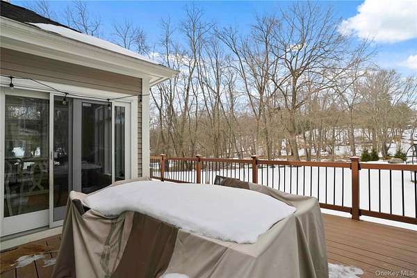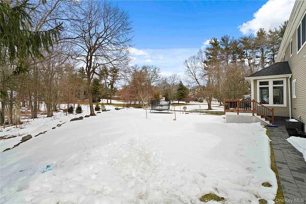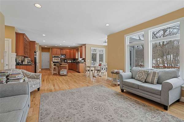 Welcome to a home defined by light and space! This airy, 3,100+ sq. ft. residence offers four spacious bedrooms and has been well maintained. The updated kitchen has double wall ovens and a gas cooktop. Abundant storage and prep space in this great chef's kitchen! Bar seating or enjoy a meal in the breakfast area. The kitchen flows seamlessly into an oversized living room anchored by a gas fireplace. For added versatility, the first floor includes a separate den or office & the convenience of a first-floor laundry room. There is also an elegant dining room (currently being used as a family room). The king size primary bedroom suite is a true retreat, featuring two generous walk-in closets and a private en-suite bathroom (whirlpool tub, spa shower, double vanity, water closet). The upstairs also has three additional bedrooms and a large hall bathroom boasting two sinks. The home offers a generous three-car garage and a huge unfinished basement (1,400 sq. ft.!). Step onto the spacious deck to enjoy the privacy of a beautiful, grassy lot bordering woodlands.