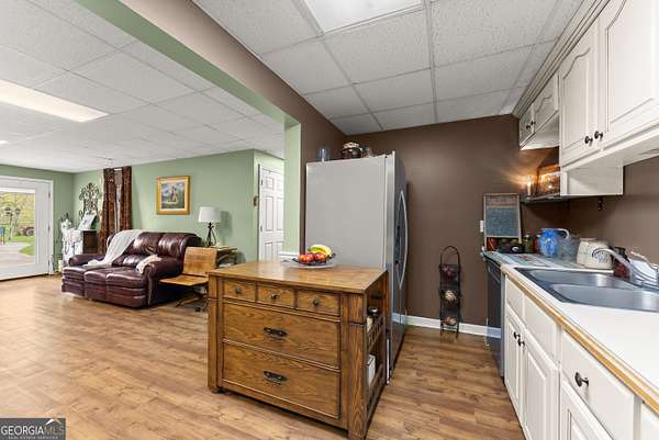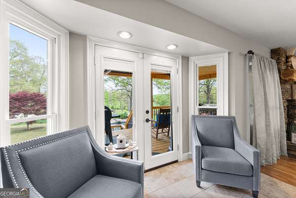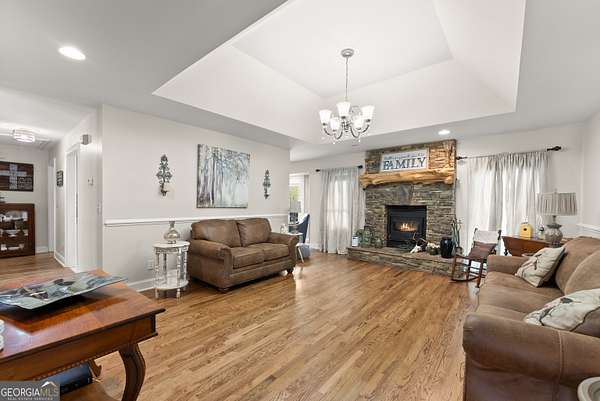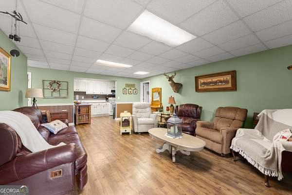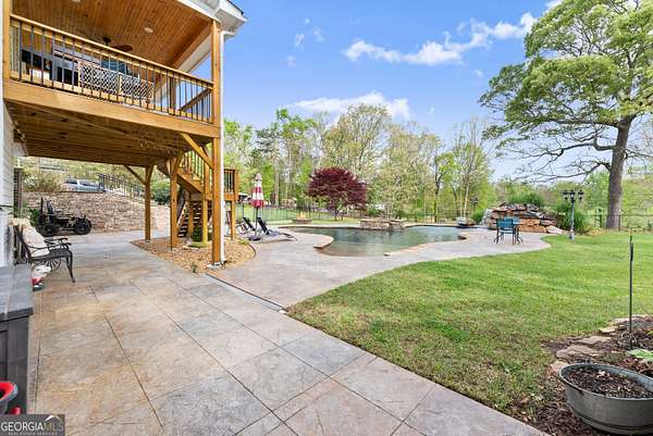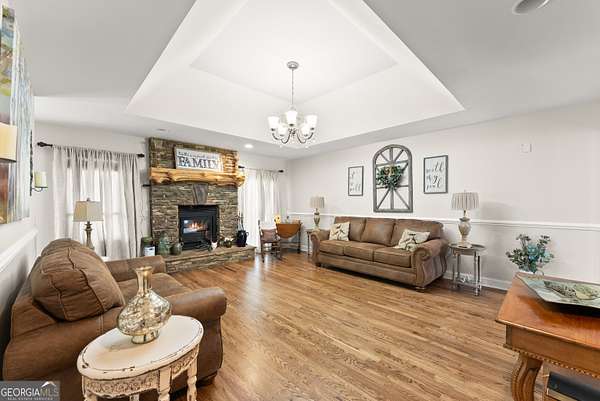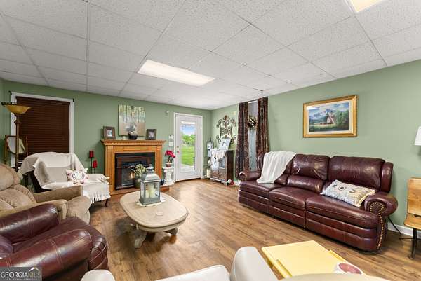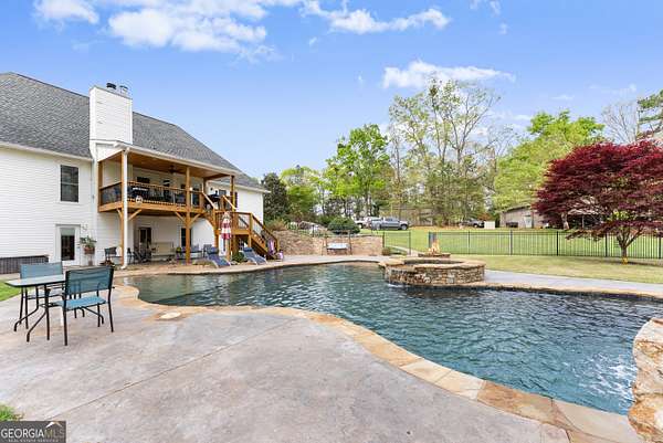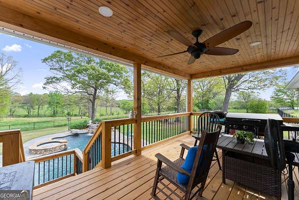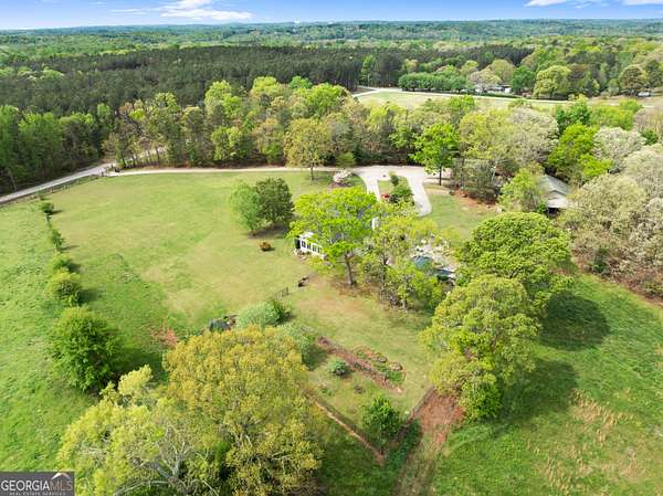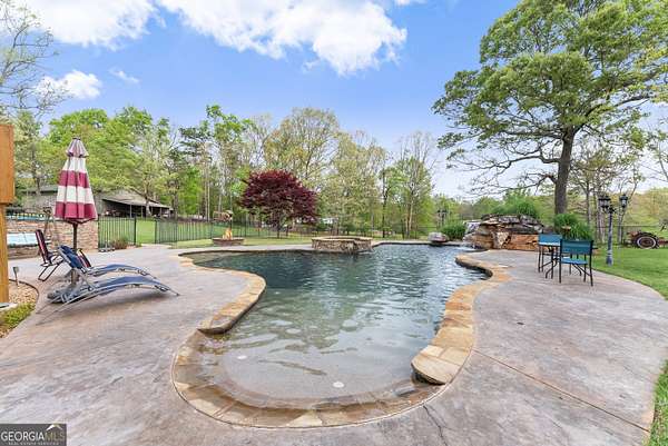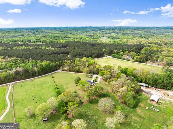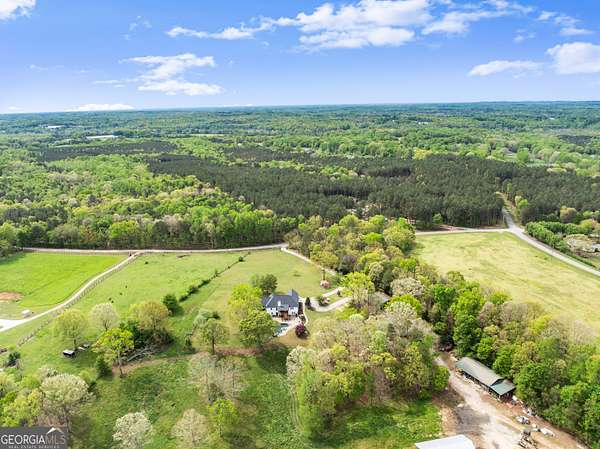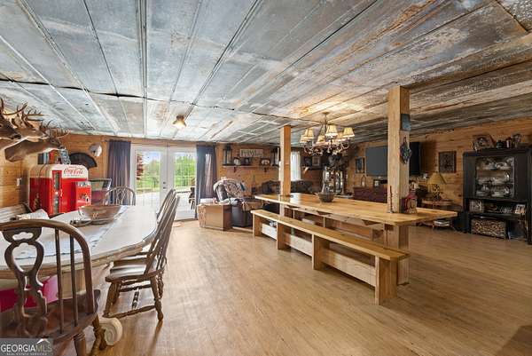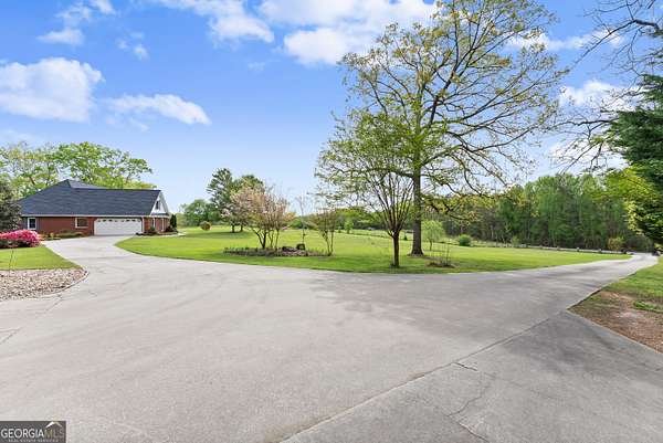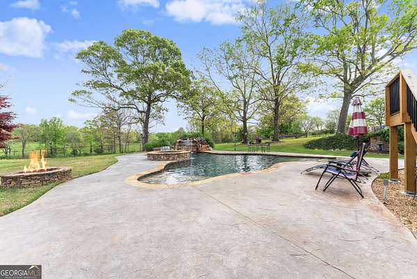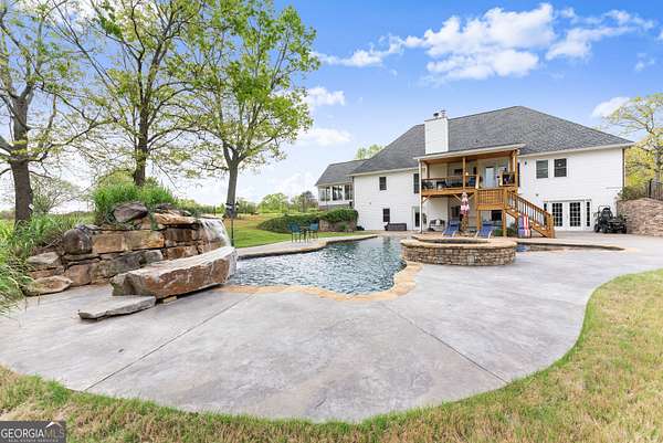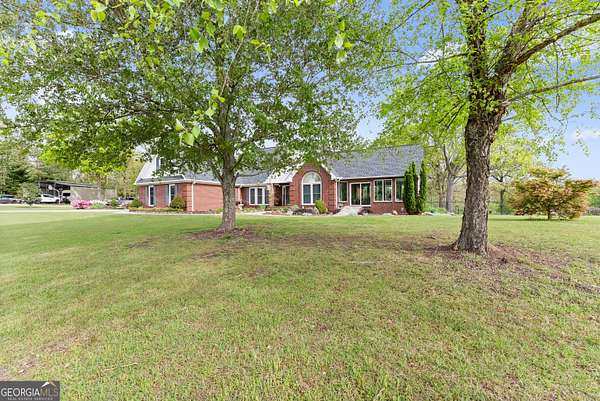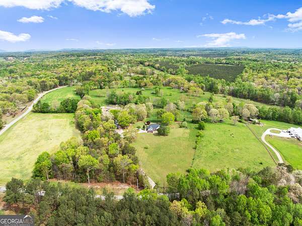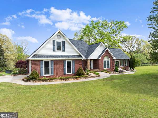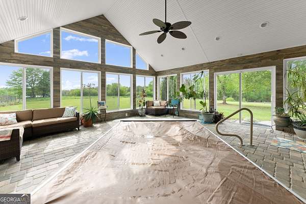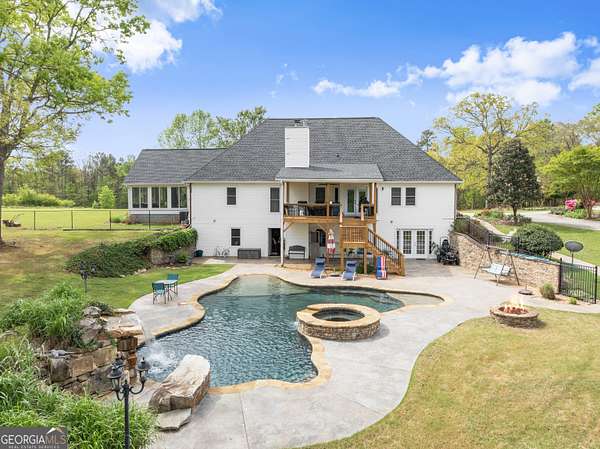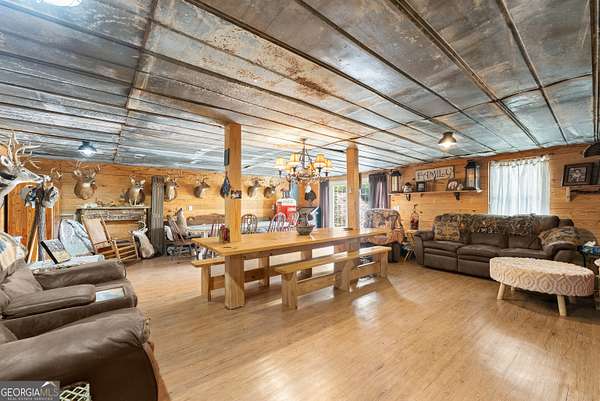 Experience unparalleled privacy and luxury with this truly one-of-a-kind 27.36-acre estate. This stunning three-sided brick home offers exceptional craftsmanship and thoughtful design throughout. Upstairs, you'll find beautiful hardwood floors, a spacious dining room that comfortably seats 12, and a bright sunroom featuring a heated indoor hot tub-perfect for year-round relaxation. The inviting living room boasts a wood-burning stove and elegant tray ceilings, while the kitchen is equipped with granite countertops and a cozy sitting area. The oversized master suite is a true retreat, complete with tray ceilings, a private sitting area, two walk-in closets, and a luxurious ensuite bath featuring a jacuzzi tub, dual vanities, an oversized shower, and an attached washroom. Recent upgrades include a brand-new roof and deck. Step outside to your own private outdoor oasis featuring a saltwater pool with a stunning waterfall, a separate hot tub area, and an outdoor fire pit-ideal for entertaining or unwinding in a serene setting. The property is fully fenced and includes multiple outbuildings: a camper shed, two pole barns (30x60 with concrete floors and 34x60), and an additional 30x40 shop with shed space-perfect for hobbies, storage, or business use. The finished basement expands the living space with laminate flooring, a full kitchen, large entertainment area, two bedrooms, a full bath, separate laundry room, and a poured concrete safe room. This extraordinary estate offers the perfect blend of luxury, functionality, and space-truly a rare opportunity you don't want to miss.