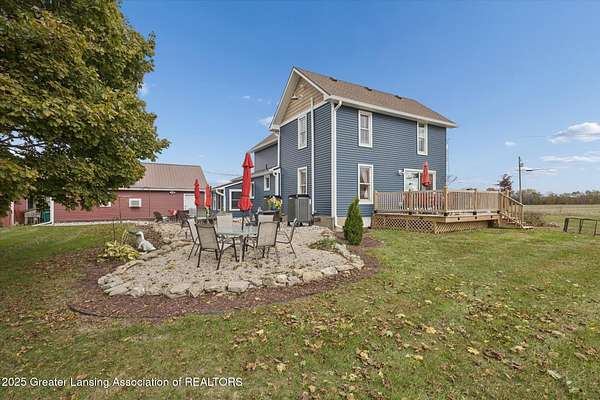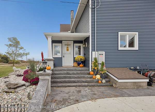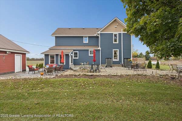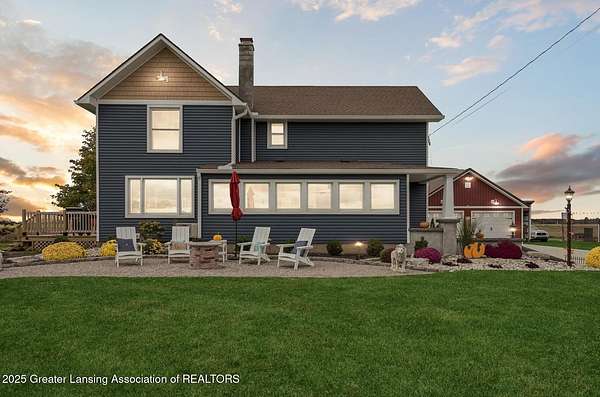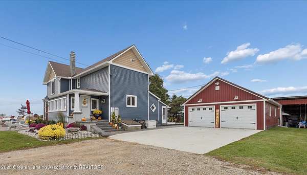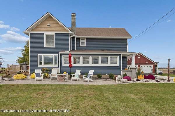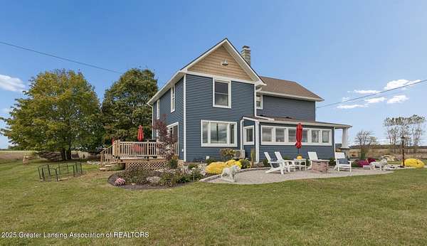 Beautiful 4 Bed / 2 Bath Updated Farmhouse on 10 Acres in St. Johns!! Welcome to 4841 Essex Center Rd. This 10-acre homestead offers the space to live your country dream. Open fields provide room for gardens and animals, with plenty of space to raise chickens, plant an orchard, or simply enjoy wide-open skies just 15 minutes from town. A farm stand is already in place, and the large shed can easily hold any equipment you might have. The land has been organically cared for for over 15 years. This lovely home has been carefully remodeled by licensed contractors with attention to detail. All appliances stay and the sellers have pre-paid one year of propane for the new buyers. This home is move in ready! Recent upgrades include - *NEW second-level owner's suite with double vanities and a large walk-in closet *TWO new furnaces on a heat pump system with propane backup and wood boiler system. *NEW electrical including meter box, updated plumbing, Generac generator, and mini split for the front porch *NEW stamped concrete porch and patio with landscaping completed by Smith's *NEW deck and patio door *NEW Cement driveway with circle drive *NEW Landscape and driveway lighting *ROOF replaced in 2019. Relax on the deck or patio, entertain outdoors, or simply take in the peaceful country views through the brand-new windows. You will love the open concept this home has and the country views from inside the home. Three bedrooms are located upstairs and the downstairs bedroom is currently used as a creative studio. Located in the St. Johns school district, this property is also near Fulton and Fowler schools, with bus routes in the area. Excellent for commuting: just 20 miles to Lansing, about 60 miles to Flint, and about 60 miles to Grand Rapids. This expertly renovated and move-in ready farmhouse and small farm are ready to welcome you home - don't miss this opportunity!