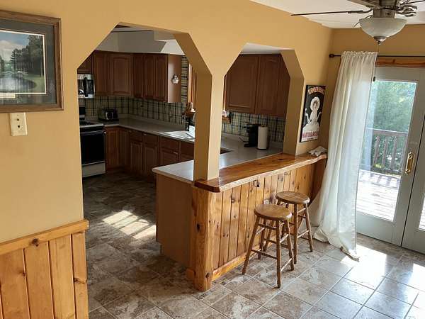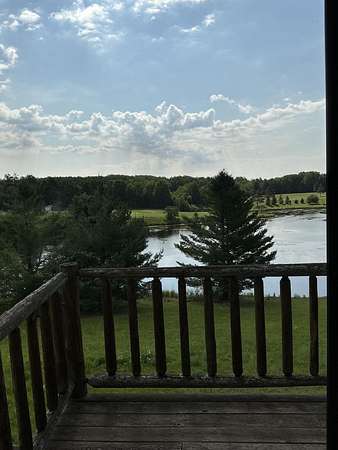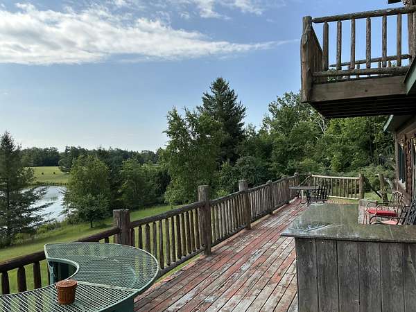Experience luxury and serenity with this beautifully appointed 3 bed, 3 bath estate set on 20 private acres. Enjoy sweeping golf course views, a large spring-fed pond, and high-end finishes throughout. The fully finished walkout basement and expansive full-length deck offer seamless indoor-outdoor living, with a private deck off the primary suite. A 5-car garage features a stylish guest suite above-perfect for entertaining or additional income. Currently a successful Airbnb with rave reviews and repeat guests, this retreat offers both lifestyle and investment potential.