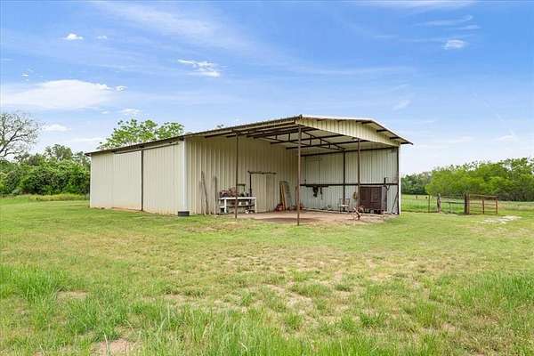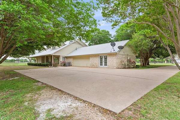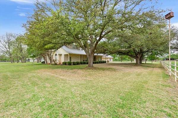 The whole package!! This lovely ranch-style home sits on 84+ acres of prime grazing pasture with a workshop, livestock barn, and two large tanks. Nestled back in the trees just off of Loop 340, the location alone is a dream, combining the convenience of town with the tranquility of the county. From the second you turn into the gated, crepe myrtle-line driveway, you'll know you've found your forever home. Built with love from the ground up, the floor plan is designed to perfection. You'll step inside and be welcomed by the formal dining, and your wow-factor will go into over-drive when you see the tall ceiling in the living room. The kitchen and breakfast area is a cook's greatest vision, unfolding right before your eyes. There's an isolated, primary suite that you'll never want to leave. With added space for a sitting area, or home office, as well as a door directly to the back porch and a massive walk-in closet, they've spared no expense. Step down the hallway, and after you see the half bath and utility room, you can walk through the garage directly into the heated and cooled extra space, which could be a fourth bedroom or even an office, game room, or home gym. Upstairs, there's two more bedrooms and another full bath, with a view that money can't buy. Build your dreams here when you can step out back directly into the pasture. With two large stock tanks, plenty of shade and mature trees, and a fantastic open pasture, we've bundled it all up in one pretty package. Bring your dreams; leave with a smile. You just found HOME.