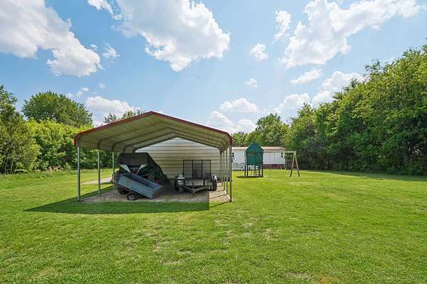 The 24x30 detached garage/workshop with power and there’s also a carport, giving you plenty of space for tools, equipment, or projects.