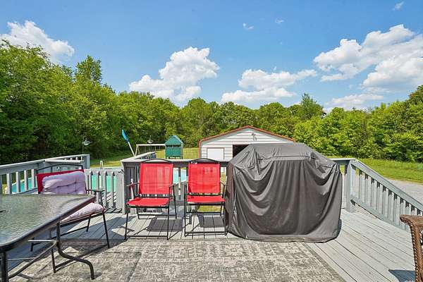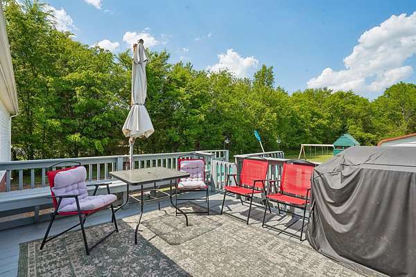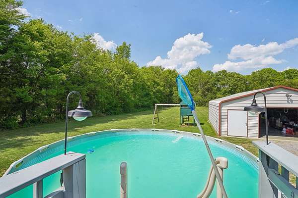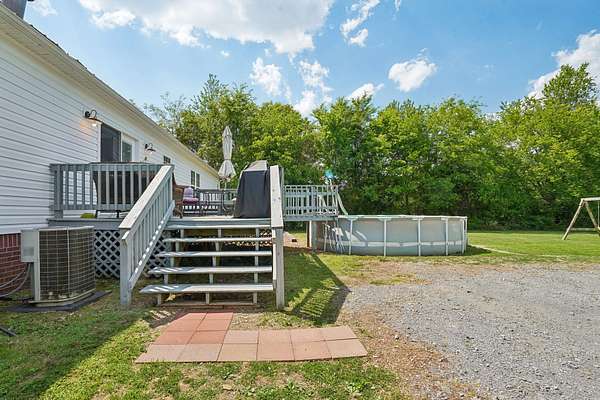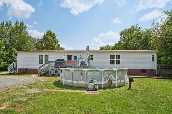 Outside is where this property really stands out. There’s a great mix of open land and wooded space, with running trails through the back wooded area and seasonal blackberry patches. Enjoy the front porch, or fire up the BBQ on the back deck overlooking the above-ground pool.