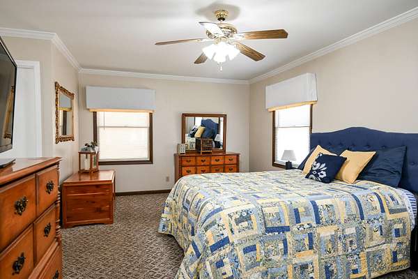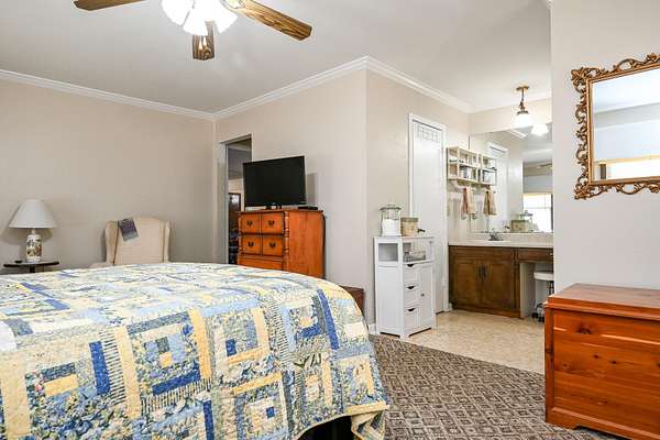 - Bathroom Mirror(s), Bookcases, Built-In Features, Ceiling Fan(s), Crown Molding, High Speed Internet, Open Floorplan, Pantry, Primary Downstairs, Split Bedrooms, Walk-In Closet(s)