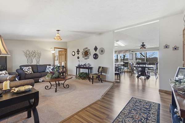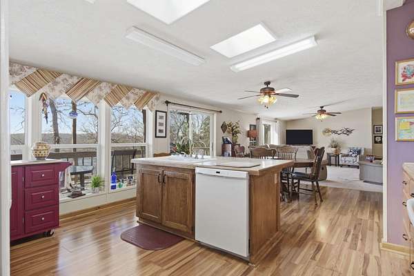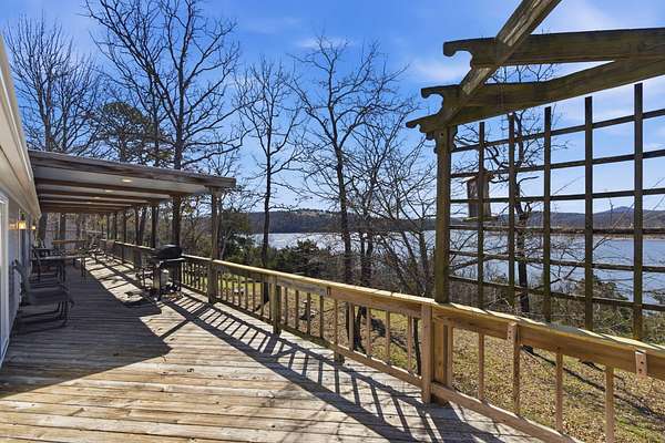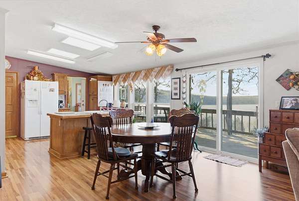 Wake up to breathtaking, year-round lake views and end your evenings in peaceful privacy at this rare gated lakefront retreat. Tucked away at the end of YY Highway on approximately 1.6 acres, this property offers the freedom of no CCRs and the kind of setting buyers dream about but rarely find.From the moment you step inside, you'll notice the vaulted ceilings, natural light, and spacious, immaculately maintained interior. Every lakeside room captures stunning water views, bringing the outdoors in and creating a calm, relaxing atmosphere throughout the home. The outdoor living is where this property truly shines. Enjoy your morning coffee or unwind after a long day on the covered back deck or shaded patio, surrounded by quiet and nature--perfect for those warm summer nights at the lake.This property is built for both lifestyle and functionality. The massive shop building offers incredible versatility with room for an RV, multiple vehicles, and workshop space. Whether you need storage, a hobby space, or room to expand, this feature sets the property apart. A storm shelter adds peace of mind, and the charming lakeview she shed provides the perfect private escape for hobbies, creativity, or relaxation.Recent updates include a newer roof and carpet (approximately 3 years old) and a heat pump installed in 2018, giving you confidence and comfort from day one.The asphalt driveway provides easy access and ample parking for guests and recreational equipment. For boating and lake lovers, you're just 3 minutes from Campbell's Point Marina, where boat slips are available for lease--making it effortless to get out on the water whenever you choose.Private. Gated. Lakefront. Flexible. This is more than a home--it's a lifestyle opportunity you don't want to miss.
