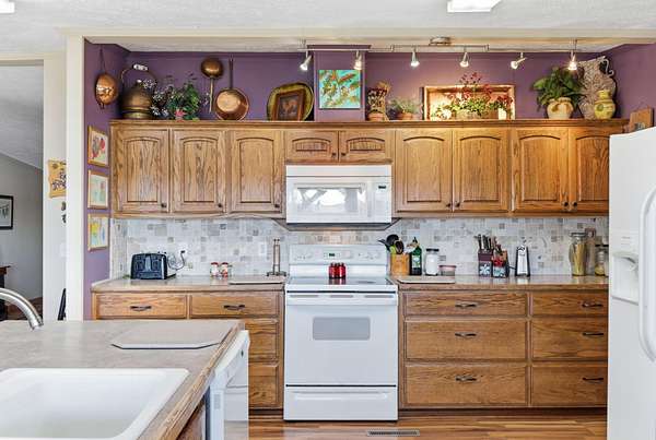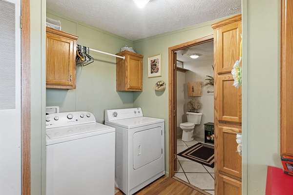 - Dishwasher, Disposal, Dryer, Electric Water Heater, Free-Standing Electric Oven, Microwave, Refrigerator, Washer, Water Softener Owned