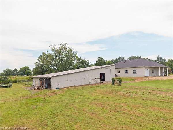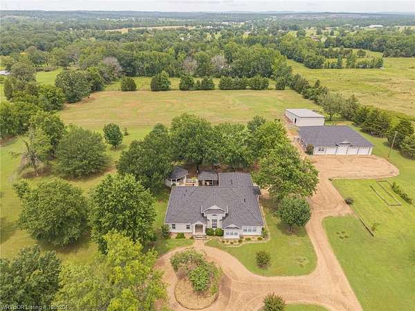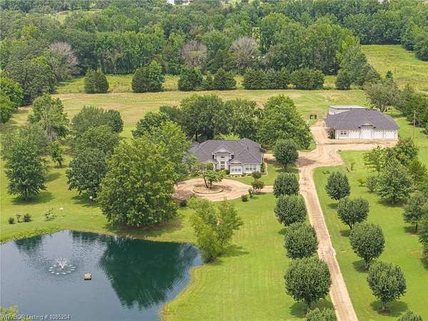 This unique property sits on 9.47+/- acres in rural Van Buren. A driveway perfectly lined with Bradford Pear trees and lights for night takes you past the lighted stocked eco pond with a beautiful fountain to the circle drive in front of the gorgeous 3bed/2bath home with bonus room and attached 2-car garage. Open the front door to spacious living with soaring ceilings and split floor plan. The living room has a gas fireplace and built in book shelves. The stairs lead up to a bonus room that overlooks the living room. New interior lighting throughout. Formal dining plus eat in kitchen. The kitchen has new sink and new stainless steel appliances and the kitchen fridge will convey. The Master Suite is full of natural lighting and an attached nursery room. The master has a huge walk-in-closet with space for workout equipment and a locking system for valuables. Other two rooms are jack & jill style with small walk-in-closets. New faucets and knobs throughout the house. There is one new unit for the house plus a completely re-built unit by Wilson's Heat & Air. A new roof has been put on the house , shop, gazebo, & potting shed. The hot tub on deck in backyard may convey if buyers wish. This property also has an additional living quarters apartment with a 4-car attached garage and shop space, totaling an additional 4,500sqft! The apartment has 2bed/1bath plus kitchen with fridge to convey. This has a new heat/air unit as well. Behind this additional living quarters is a large barn with chicken coop. On the back acreage there is a dirt bike trail made. This could also make a great pasture for livestock . The property is fenced. This property has so much space for anything your family and friends love to do. The possibilities are endless! And there is room for everyone for holiday gatherings coming up! The scenery is peaceful, private feeling, yet convenient to town! Do not miss out on this opportunity to own a one-of-a-kind beautiful property!