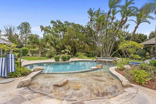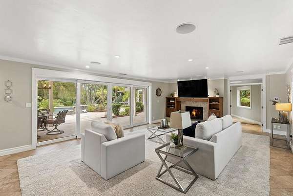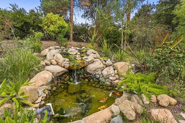 Situated behind a private gated entry in one of Mt. Helix's most desirable enclaves, 4847 Vita Rd presents a rare opportunity to own a refined single-story ranch style estate on approximately 1.7 acres. A serene front approach featuring a koi pond, expansive covered porch, mature landscaping, and fruit trees establishes an immediate sense of privacy and distinction.The residence offers a thoughtfully designed open floor plan accented by hardwood flooring and seamless indoor-outdoor flow. The farmhouse-inspired kitchen is appointed with a large center island and high-end appliances, opening to expansive living spaces and retractable doors that blur the line between indoors and out, leading to a backyard that feels more like a private resort than a residence. A tablet-controlled whole-house audio system with interior and exterior zones provides effortless ambiance throughout. Four generously sized bedrooms each feature en-suite bathrooms, while the primary suite is highlighted by a fireplace, spa-inspired bath with soaking tub, oversized vanity, and a massive walk-in closet. A bonus room offers flexible space for guests, media, a kid's retreat, or other additional living needs.Outdoors, the property reveals itself in layers. A tropical pool and spa with walk-in entry, outdoor fire pit, expansive entertaining areas, and multiple private seating spaces invite relaxation, connection, and moments of escape. Wide open park-like land and on-site horse stables provide a rare opportunity for equestrian living while still allowing ample space to entertain, play, and relax all in complete privacy.With owned solar, pool solar heating, RV or boat parking, a three-car garage, and a location that balances exclusivity with convenience, this is not just a home you see; it's a home you feel.