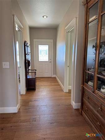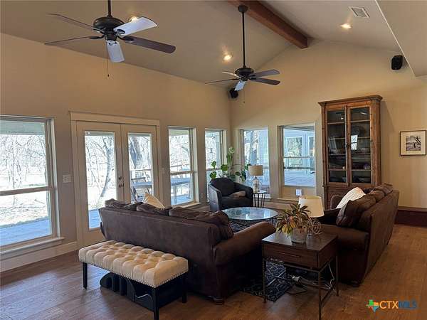 261.89 acres, this ranch offers a blend of beautiful hills and ranching in the heart of Texas Hill Country. This property features approx. one mile of Wallace Creek and has diverse topography. Wallace Creek offers fun such as wading, swimming and fishing. Tree shaded banks and valleys offer park like settings for wonderful family picnics. Wildlife is abundant, Whitetail deer, Turkeys, Ducks, Feral Hogs. The ranch has 3 dependable stock tanks. There is a good water well that supplies the house and headquarters area, another windmill well on the back side of the ranch and a good water well for the main home. The ranch has two custom-built homes in 2007, total of approx. 6,224 sq. ft., a combined 8 bedrooms and 5.5 baths. Designed with a breezeway and a large deck overlooking Wallace Creek, the homes have vaulted ceilings, stone fireplace, wood floors, and high-end finishes. Each home has a living area and kitchen. Close to the main house is a work shop or barn, concrete slab and a covered area for storage of tractors, equipment. The ranch has two entrances one for the main house and shop and the other one is for the headquarters and farm house. Quaint farm house (100 +- years old) has a screened-in porch, two bedrooms, full bathroom, and central heating and cooling making it a great ranch foreman quarters or a hunting cabin. A 40 ft. x63 ft. (approx) barn has a slab, 2 drive-through overhead doors, 3 walk-through doors, insulated, electric, water and a bathroom/laundry room. A small shed with AC behind the barn and across the road are pipe working pens and a squeeze chute. The ranch is cross fenced into several pastures allowing for rotational grazing. The large hill top with dense cover provides great hunting and has several great home sites with exceptional views. This is truly a combination ranch providing the best of both worlds for hunting, recreational and agricultural. The seller is open to selling the main house, shop along with 30 acres or more.