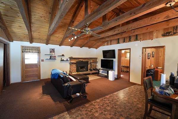 3 bedroom 1 bath cabin. Detached heated garage and a Quonset hut for additional vehicle storage.