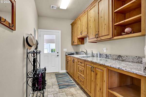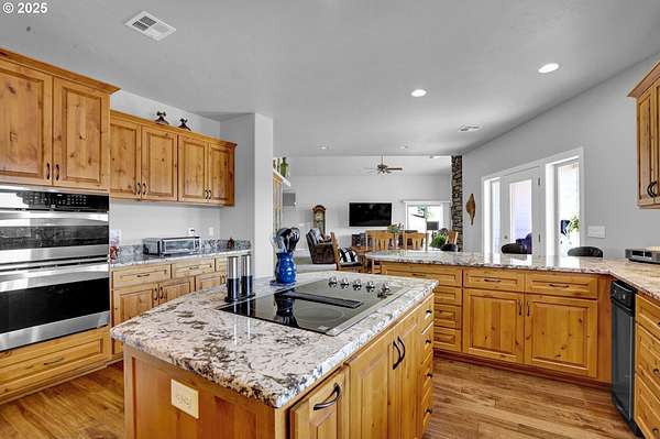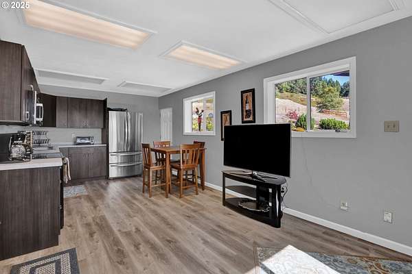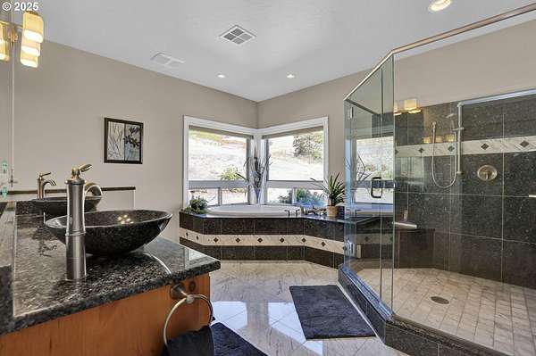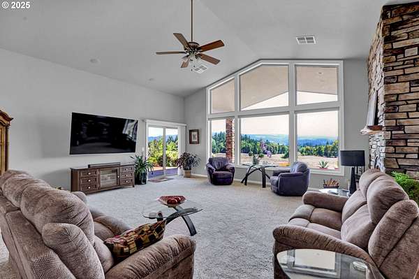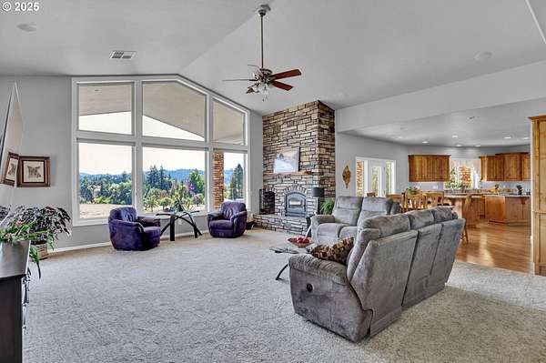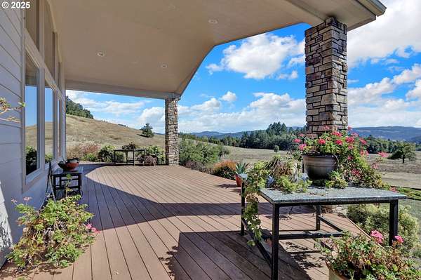 Perched above the valley with over 245 acres of sweeping, unobstructed views, this extraordinary estate is a rare sanctuary where modern luxury meets pristine natural beauty. Custom designed and built by the current owner, the 3-bedroom, 2.5-bath main residence is a masterpiece of craftsmanship, offering refined finishes and inspired living spaces that embrace both comfort and sophistication. A chef's dream kitchen anchors the home with striking granite countertops, knotty alder cabinetry, stainless steel appliances, convection oven and microwave, and a built-in trash compactor. The great room is a showpiece with its vaulted ceilings, floor-to-ceiling windows framing breathtaking panoramas, and a zero-clearance wood stove that invites warmth and gathering. The primary suite is an indulgent retreat with dual granite vanities, marble flooring, a spa-like soaking tub, and a walk-in shower with dual shower heads-an oasis designed for relaxation. Expansive covered decks with Trex decking extend the living space outdoors, ideal for both grand entertaining and quiet evenings immersed in nature's beauty. Elegantly remodeled, the 1-bedroom, 1-bath guest residence offers refined comfort with LVP flooring, updated appliances, and modern finishes-perfect for visitors or as a private retreat. This estate's 245+ acres are a true rarity: rolling pastures for equestrian pursuits, 88 acres of harvestable timber, and abundant space for recreation and exploration. Two pole barns and a 30x30 heated shop provide ample versatility for hobbies or work. For those seeking a turnkey lifestyle, essential equipment-including a D3 bulldozer, tractor, trailer, and log splitters-may be included.