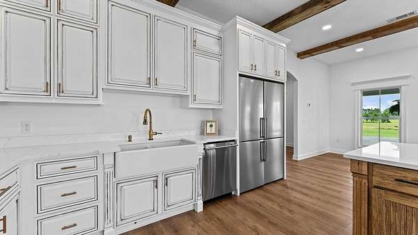 Your dream Ranch awaits! 157 acre farm located in Douglas, Ga. 4140 sq foot home with 3840 sq heated and cooled rec room with bar. Thats nearly 8,000 sq feet of heated and cooled space. 4 bed and 4.5 bath, gourmet kitchen, living room with gas fireplace. Land is prepped with 65 acres for a Bermuda sod operation or perfect for pasture land. Several ponds for fishing, with a healthy population of duck and geese. A 30x50 shop with two twelve foot roll up doors, a 52x50 enclosed hay barn, 52x50 equipment barn, 30x40 lean to shed. Also a chicken coop, 5 run in shelters for horses or other livestock. Several fenced pastures. 3 tier pivot with 6" well. There are also 23 residential lots surveyed out for future use. And the list keeps going. Asking price of $2,750,000. Some equipment can be purchased outside of the real estate. Owner is a licensed Real Estate broker in Georgia.