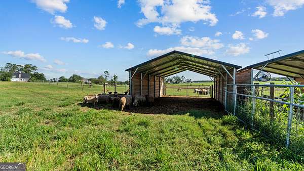 Just a short 2-hour drive from Jacksonville, FL, this extraordinary 157-acre ranch offers the perfect blend of luxury living, income potential, and outdoor lifestyle. The Residence At the heart of the property sits a stunning 4,140 sq. ft. home, featuring 4 bedrooms and 4.5 bathrooms. Inside, you'll find a gourmet kitchen, a spacious living room with a gas fireplace, and all the modern comforts you'd expect in a high-end estate. Adding to the lifestyle, the home includes a 3,840 sq. ft. heated and cooled recreation room with a full bar-nearly 8,000 sq. ft. of climate-controlled space under roof, ideal for entertaining family and friends. The Land & Lifestyle With 65 acres prepped for Bermuda sod or pasture, this property is a horse lover's dream come true. Multiple fenced pastures, 5 run-in shelters, and a 3-tier pivot with 6" well make it turnkey for equestrian use, cattle, or farming operations. Outdoor enthusiasts will also enjoy the several stocked ponds, teeming with fish, and home to ducks and geese that provide endless recreation. Agricultural & Ranch Improvements The property is fully outfitted with: 30x50 shop with dual 12' roll-up doors 52x50 enclosed hay barn 52x50 equipment barn 30x40 lean-to shed Chicken coop Fenced pastures with cross-fencing Every detail is already in place for ranching, farming, or equestrian pursuits. Investment Opportunity In addition to the ranch and improvements, the property comes with 23 surveyed residential lots, already valued at over $500,000-offering excellent future development potential and built-in equity. Bonus Some equipment can be purchased outside of the real estate transaction for a seamless start to operations.