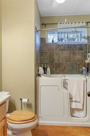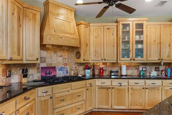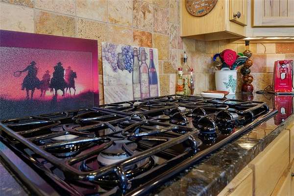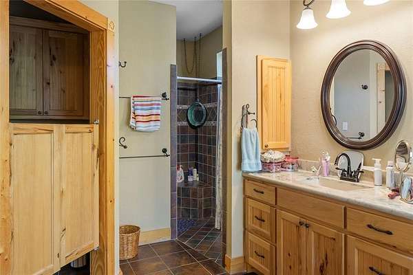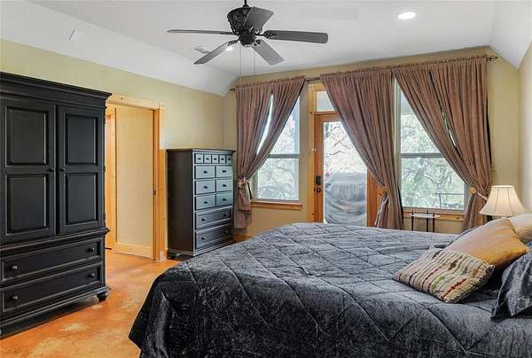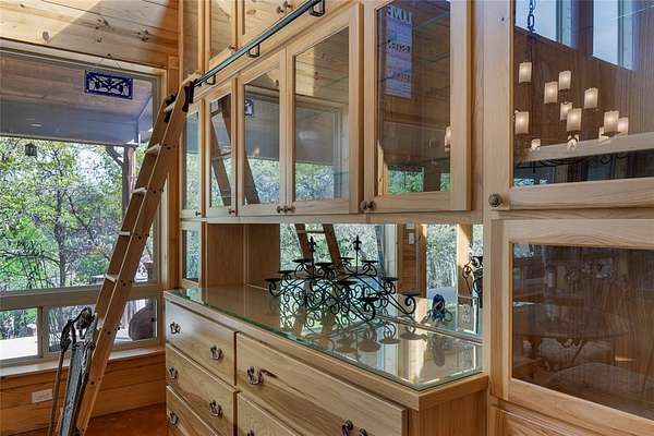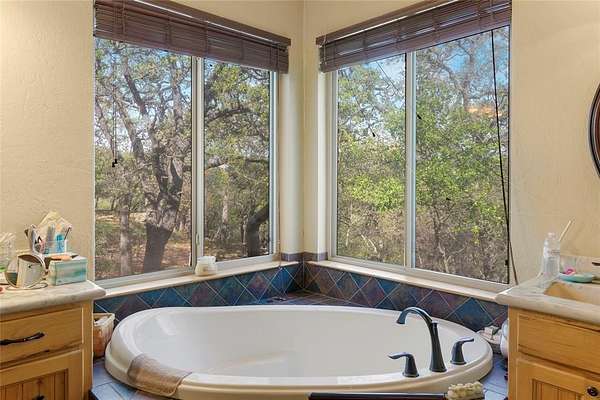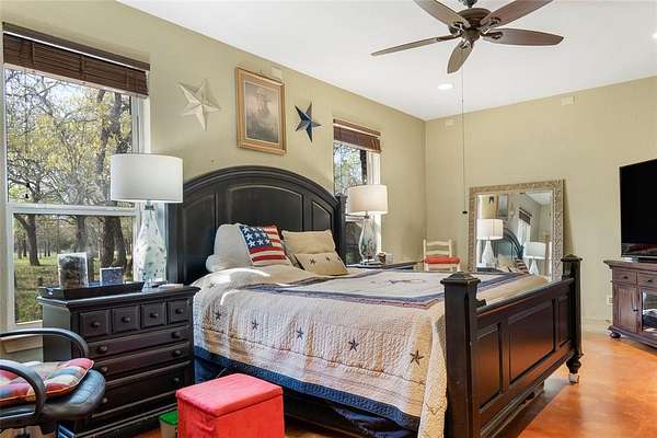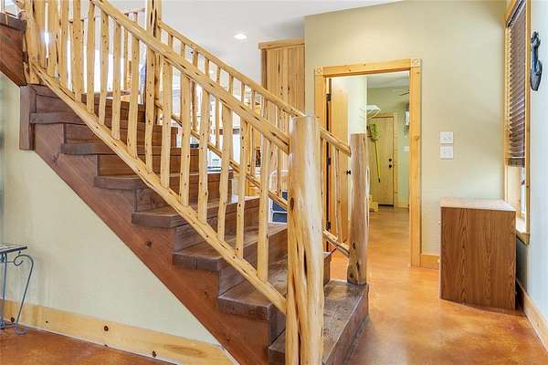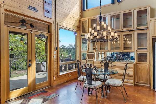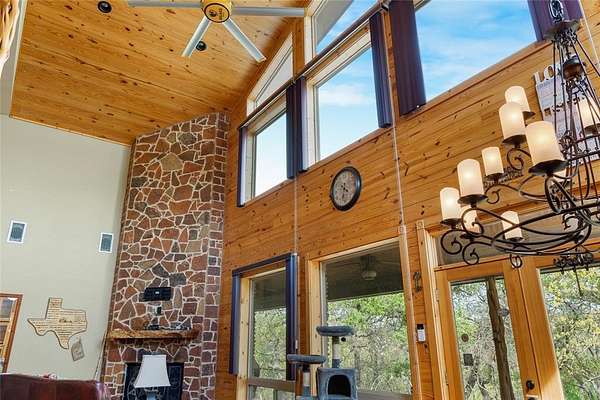 This is a fantastic example of a Clayton Mountain Hill Country Style Home! With a massive towering ceiling that greets you the moment you walk through the front door, a full wall of windows overlooking the nature park behind the home, and rustic finishes throughout, you'll never want to leave! The home features custom woodwork, cedar trim details, stained concrete floors, tons of built-in custom cabinetry, huge kitchen space, and more! On the outside, you will find a full stone exterior with a metal roof. In the backyard, you will enjoy overlooking a peaceful pond frequented by deer, turkey, and aoudad that is also stocked with fish and ready to enjoy. The pond is located in the community hiking area, the home backs up against that, and features miles of hiking trails with over 200 acres of space to explore. If you're yearning for a hill country style getaway but would love to find something closer, please note that this one is only an hour west of Fort Worth! The home is located in a gated resort community full of premium amenities, hiking trails, fishing lakes, riding stables, and more! Perfect for full-time resort-style living or an amazing getaway home that someday might turn into your primary residence! Sellers are motivated...don't miss the chance to buy now and begin to immediately enjoy a lifestyle that is unimaginable to most! Please note that the walk-in tub shown in the pictures will be removed and replaced with a typical tub-shower unless negotiated differently.