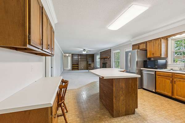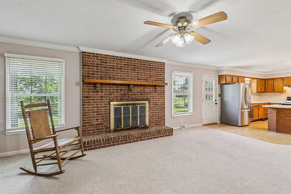 This Four Bedroom Brick Home Located just outside the city limits gives you close city access without city taxes. Outside Features A Large Double Lot, Shade Trees , Deck, Two Car Carport, Paved Driveway and A 22x33 Detached shop/outbuilding with Electricity. Inside you will find an Open Floor Plan that Includes A Large Den with Fireplace and Built Ins Perfect for those Family get togethers or just relaxing at home watching the game / favorite show., Kitchen Has Island, Office Area and All Appliances Included. Just off the kitchen you will find a Dining Room/Bonus room and a Large Laundry/Utility Room. This Four Bedroom House is Ready for your Family To Enjoy.