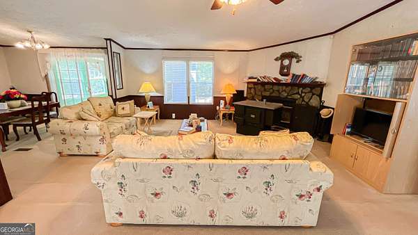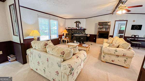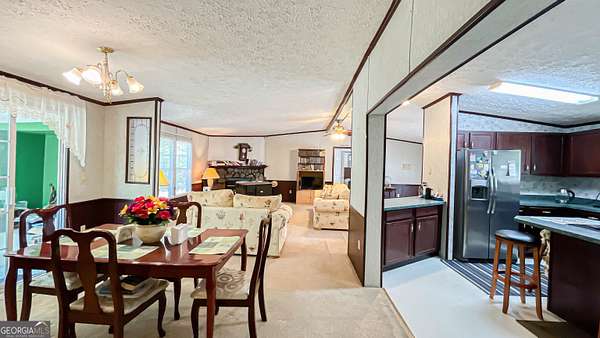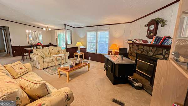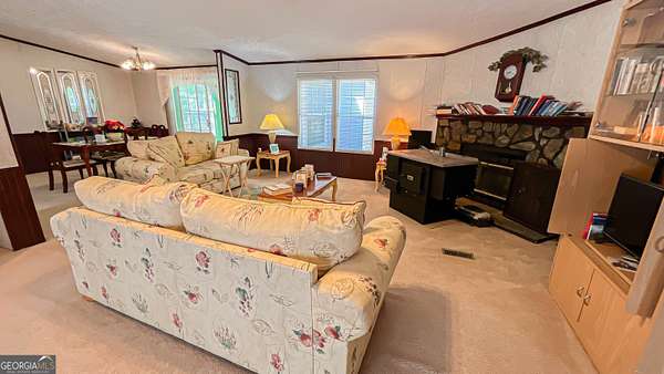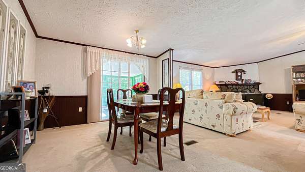 Welcome to your own private retreat at 485 Natures Trail in Forsyth! Nestled on nearly 10 acres of peaceful, secluded land, this beautifully maintained 3-bedroom, 2-bath home offers the perfect blend of comfort, space, and privacy-with no HOA restrictions. Step inside to find a spacious and inviting layout featuring a large family room with a cozy fireplace, perfect for relaxing or entertaining. The oversized kitchen offers abundant cabinetry and generous countertop space, along with a bright eat-in area and a separate dining room for more formal gatherings. The split-bedroom floor plan provides added privacy, with a spacious primary suite that serves as a true retreat. Enjoy a large walk-in closet and unwind in the spa-like bathroom complete with a jetted soaking tub. The additional bedrooms are well-sized and ideal for family, guests, or a home office. Additional highlights include a separate laundry room, a sunroom filled with natural light, and a one-year-old roof for peace of mind. If you've been searching for quiet country living with room to roam-while still being convenient to Forsyth-this property is a must-see!