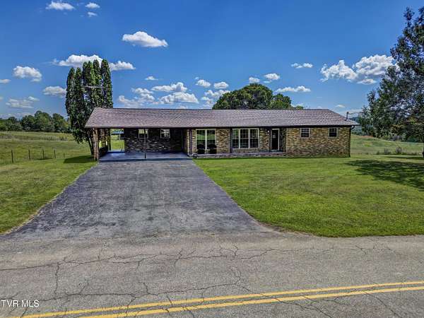 YOUR DREAM farm on almost 25 acres of Paradise! This darling all brick-ranch style home is the perfect place for those who need one level living, with the carport, laundry/mudroom, kitchen, dining, living room 3 bedrooms, small office and the primary all on the main level. The home has a large unfinished walk out basement for projects (or it can be finished for additional living space), a detached garage for farm/other toys, a barn and sheds. There is a POND and gorgeous MOUNTAIN VIEWS! There is also a great RV pad. The entire property is fenced and cross fenced for cattle, horses, goats, etc. plus there is huge potential to make this into a multi-generational set up as there is 599 feet of road frontage on Pates Hill and 1601 feet of road frontage on Snake Hollow with several beautiful building sites. The home has a well that is not in use and needs a well pump but could become operational for additional water needs (the home is on city water). This property lays beautifully with gentle slops and many flat areas and views from all angles. The owner has made several major improvements in the last 2 years including New Roof, updated plumbing, windows, heat pump, kitchen and bathroom remodels, new appliances, new flooring and updated lighting. This property sits in the quiet countryside of Mosheim yet is still close to Greeneville and I-81 access. This home also has low taxes of $1036 per YEAR as it in the Greenbelt (ask your agent for more details). The Sellers are leaving the refrigerator. Do Not Miss this amazing home!