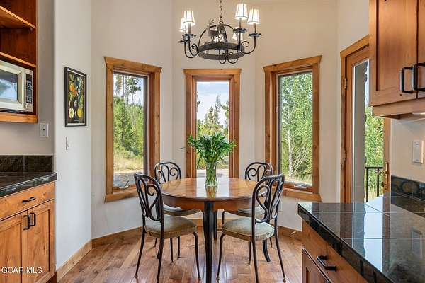 Experience the charm of this gorgeous custom home, nestled on three serene acres in the friendly neighborhood of Homestead Hills. With its classic style, this home features custom alder cabinetry throughout, enhancing its timeless appeal. Floor-to-ceiling windows showcase breathtaking views of the aspens and mountains, all just minutes from skiing. Enjoy spacious entertaining areas in the great room, whether gathered around the cozy fireplace or on the expansive deck that overlooks the lush woodlands. Gorgeous hickory floors add warmth and character, while the main-floor master suite offers convenience and comfort. The chef's gourmet kitchen and oversized garage complete this remarkable offering. Embrace the mountain lifestyle you've always wanted-your perfect retreat awaits.