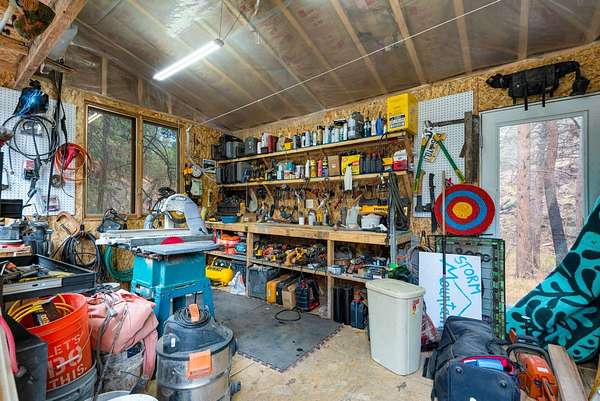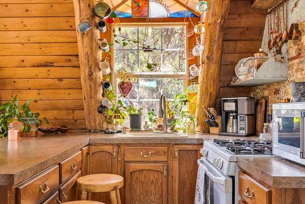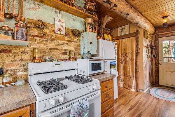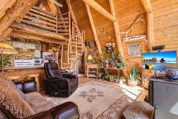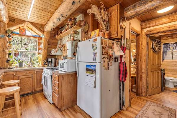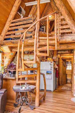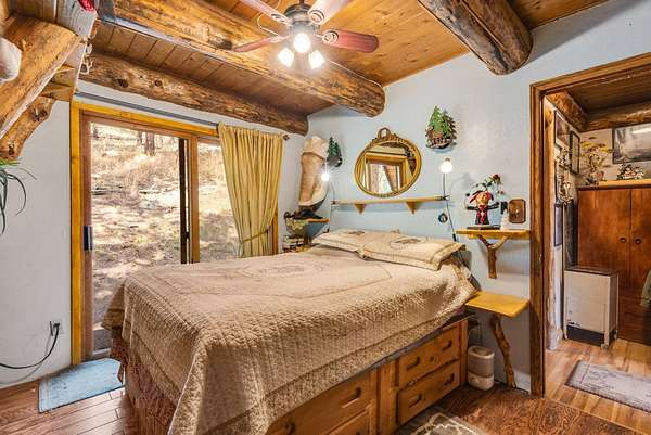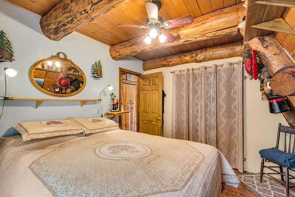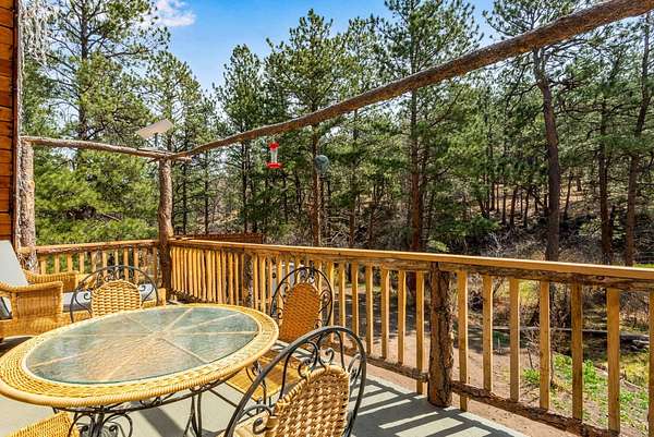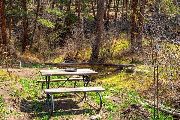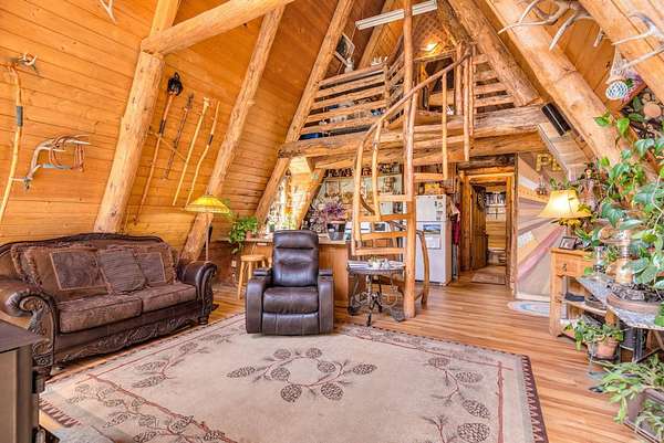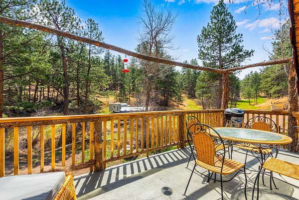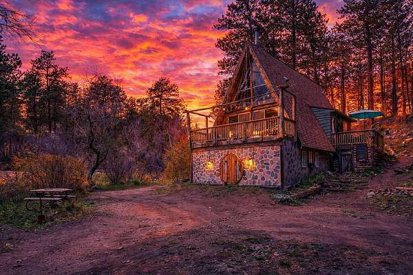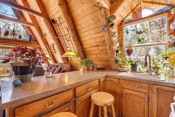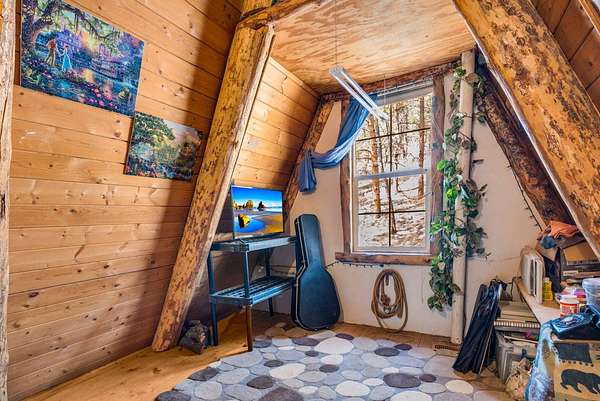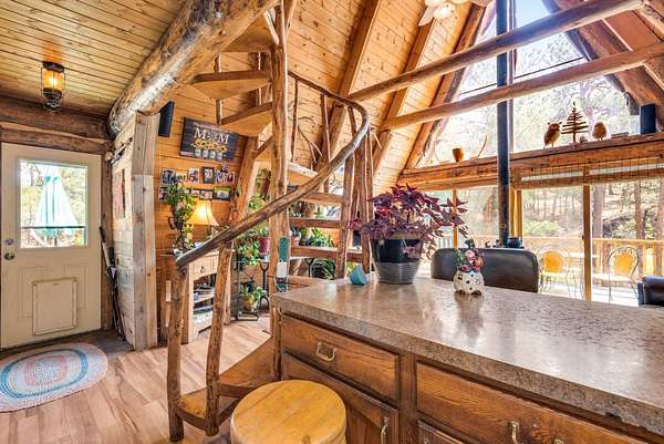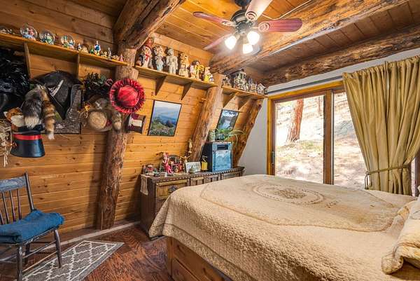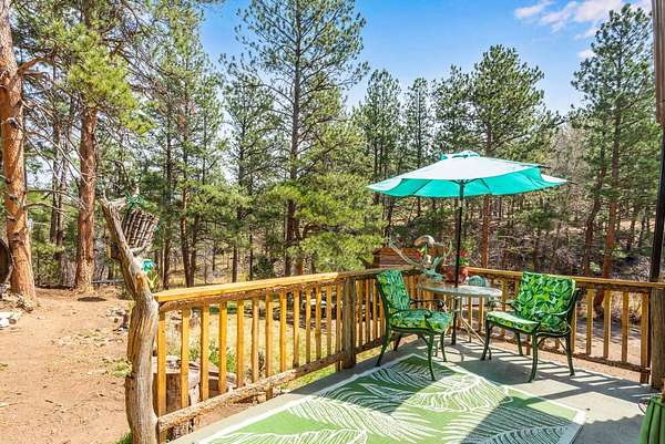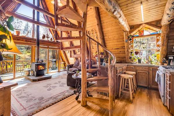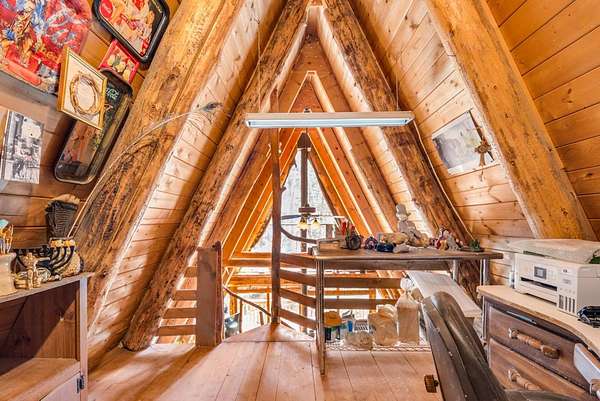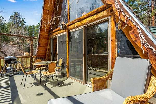 Set at the end of a quiet road on 1.65 private acres, this unforgettable A-frame is the kind of property buyers dream about but rarely find. Surrounded by towering pines, a seasonal stream, and peaceful forest views, this absolute gem delivers the perfect blend of architectural character, privacy, and year-round accessibility. Whether you are searching for a weekend escape, a creative retreat, a remote-work hideaway, or a place to unplug and reconnect with nature, this cabin offers a lifestyle that feels worlds away while still being within easy reach of Loveland and Estes Park. Inside, the home lives far larger than its 834 square feet, with soaring vaulted ceilings, warm wood accents, an open-concept layout, and a lofted upper level that gives the home its iconic cabin feel. The updated kitchen, remodeled bath, natural stone hearth, and high-efficiency Quadra-Fire wood stove create the perfect balance of rustic charm and modern comfort. Large windows and expansive decks blur the line between indoors and out, making the surrounding landscape part of everyday life. Spend your mornings with coffee overlooking the trees, your afternoons working remotely with mountain views outside your window, and your evenings listening to the sounds of the seasonal stream under a sky full of stars. A private half-mile trail leads to a secluded lake and seasonal cascades, while National Forest access sits less than half a mile away. Additional features including supplemental solar, a workshop/shed, forced-air heating, and year-round road access make this a true all-season retreat. This is more than a cabin. It is a storybook mountain escape with timeless A-frame architecture and the kind of setting that makes buyers fall in love the moment they arrive. Touring this beautiful home? You are invited to sit on the deck for a moment and take in the scenery while you are there. Breathe in the fresh mountain air and experience the rare opportunity that could be yours!