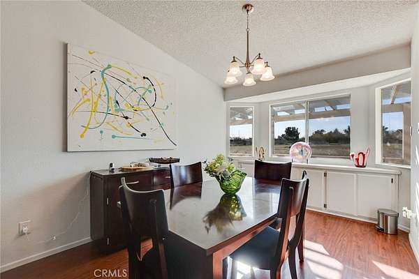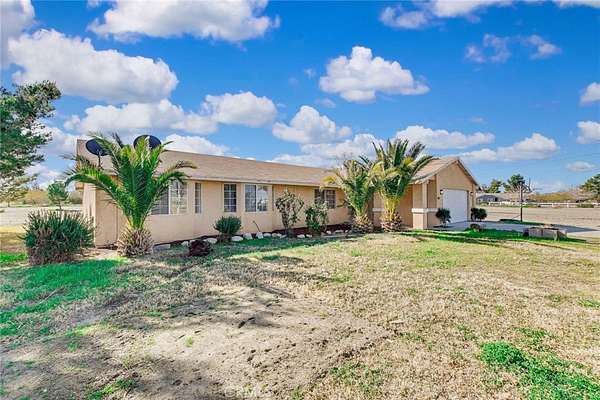 Welcome to this beautiful single-story residence offering 3 bedrooms and 2 bathrooms with approximately 1,670 square feet of well-designed living space with approximately 2.13 acres usable square lot. This home features an open-concept floor plan enhanced by modern upgrades throughout. The upgraded kitchen is the heart of the home, showcasing a center island with counter seating, quartz countertops, decorative backsplash, upgraded cabinetry, and an abundance of storage. A dishwasher and refrigerator are included. A separate dining nook is conveniently located adjacent to the kitchen, ideal for everyday meals. The kitchen opens to the living room, while an additional family room with a wood-burning stove provides a warm and inviting space for gatherings and entertaining. The hallway leads to two secondary bedrooms with bay windows that share a full bathroom, along with the primary bedroom. The primary bathroom features dual sinks for added convenience. Outdoor amenities include an above-ground pool with deck and automatic filter, perfectly positioned at the front of the home for enjoying summer days. The fully fenced property offers privacy and ample space for toys, trailers, farm animals, and RV parking/access, providing endless possibilities. Enjoy an affordable Southern California lifestyle with low property taxes and no HOA. Conveniently located close to pavement near Johnson Road. Move-in ready and waiting for you to call it, your HOME!