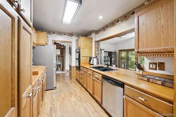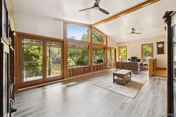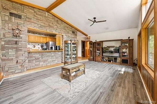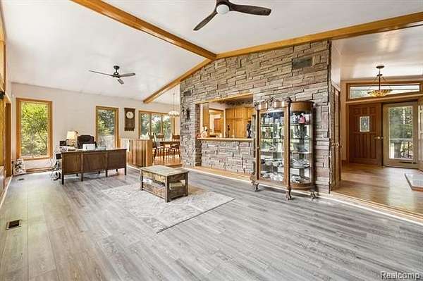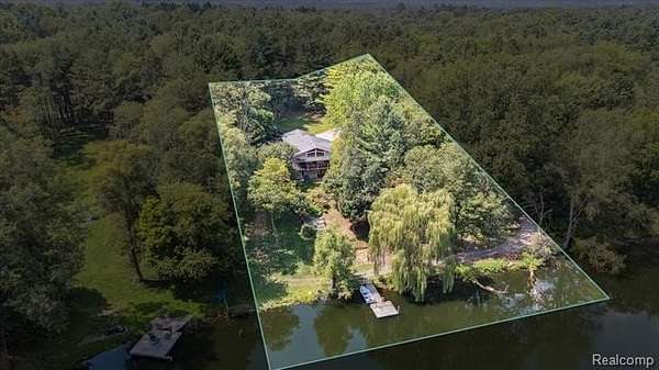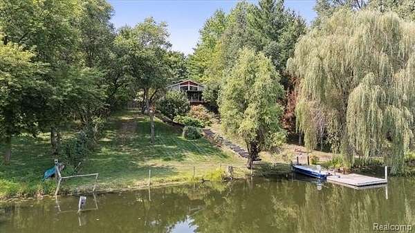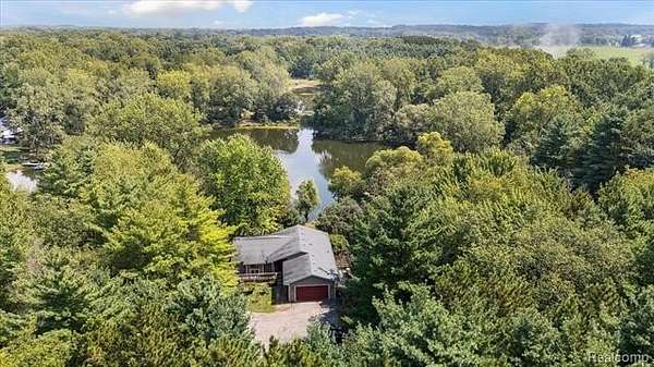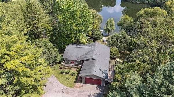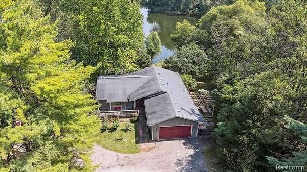 "Enjoy the feeling of being up north without the long drive! This ranch home sits on a private pond with its own dock, and only a handful of homes around it--offering true privacy and year-round views. Perfect for water sport lovers, the pond is ideal for boating, kayaking, fishing, and relaxing by the water. Nestled on over 2 acres of wooded land, the home features 3 bedrooms and 2.1 baths, including a spacious primary suite with dual-entry walk-in closet, ensuite bath, and a doorwall opening to the pond. The living room boasts high ceilings and a wall of windows overlooking the water. A walkout basement with a dedicated storage room, additional storage throughout, a 2-car attached garage, and a shed provide plenty of space with endless potential. This home was built by a builder for his own daughter, giving it a solid construction. Bring your personal touches and make this waterfront property your dream home."