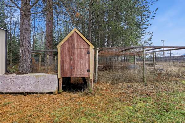 Est $2,698/moCharming 3-bed, 2-bath single-level home nestled on a private, fully fenced property. Enjoy a spacious family room with custom built-ins, a generous two-car garage with enclosed side storage for yard equipment, and a massive 30x40 shop featuring a loft-perfect for hobbies or storage. The fenced yard includes a garden area, chicken coop with run, and plenty of room to grow. Peaceful, practical, and full of potential!