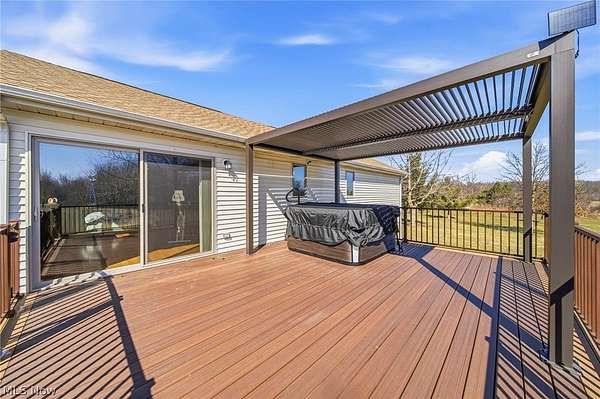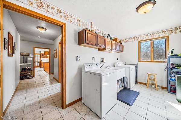 Beautiful custom-built ranch on private 50-acre lot, offering peace, privacy, and exceptional craftsmanship. This 3-bed, 3.5 bath home is truly a private getaway. The primary suite provides a peaceful retreat with recently added patio doors that lead out to the Fiberon composite deck with Trex aluminum railing and pergola along with a newer Marquis Crown hot tub overlooking the lovely pond, all added in 2025. Convenient first floor laundry. Kitchen updated Spring 2021 with quartz countertops and oak cabinetry, matching oak woodwork in the home. Roof replaced 2019. Hardwood floors and tile run throughout, complemented by wide 36" doorways. The expansive living room centers around a wood-burning fireplace with new liner 2022, with an additional wood burner in the basement; primary heat is a propane furnace and heat pump. All stainless steel kitchen appliances remain. The full, unfinished basement offers enormous potential for additional living space and includes a large 31' x 5' cold storage room, plus a newly added half bath with Saniflo up flush system 2023. Outdoor amenities are just as impressive. Enjoy a 2-car attached garage, plus a 30' x 48', 3-bay detached garage/shop with added electric, sub panel, and 30-amp service 2024, and fresh concrete pad 2025. A newly constructed pole barn with custom bay door 2024, windmill for pond aeration 2025, fruit trees, blueberry bushes. The pond serves as the home's water source, adding to the natural beauty of the setting. High-efficiency furnace with heat pump & AC 2025; sauna 2022, whole home generator 30 amp switch 2023, fiber optics 2025. This property is absolutely stunning and offers a rare combination of luxury and seclusion. Heavily wooded land! A hunter's and/or homesteaders paradise or your own private Country Oasis. Sale includes home with 50 acres & Millennium "Buck Hut" in woods. See separate MLS listing for this home being sold with 10 acres, with 40 acres being separated with survey to convey at closing