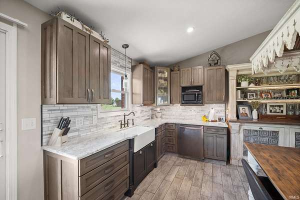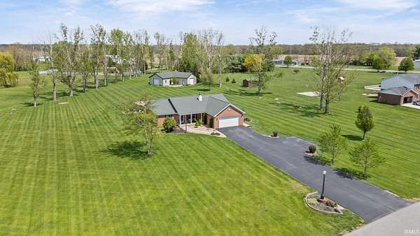 Looking for a peaceful retreat with room to live, work, and unwind? Welcome to 4853 Shenandoah. This beautifully maintained brick ranch sits on 3.2 acres and offers the perfect blend of comfort, functionality, and privacy. Inside, you’ll find 4 spacious bedrooms, 3 full bathrooms, and a flex room. The split floor plan provides added privacy, with a primary master featuring an en suite bathroom updated in 2025 with elegant marble countertops. The home has been thoughtfully updated with new flooring throughout and a stunning kitchen complete with custom hickory cabinetry and quartz countertops-perfect for everyday living and entertaining alike. An updated laundry room with an oversized storage room add even more convenience. Step outside to your own private oasis. Enjoy summers in the heated, saltwater pool, relax under the pergola, and take in the peaceful rural surroundings. Need space for hobbies, or extra storage? The impressive 24’ x 48’ pole barn has you covered-featuring its own separate meter, 200 amp service, boiler heat, air conditioning, and a dedicated office space. Additional highlights include an invisible fence surrounding the entire property, many more updates and the freedom of no HOA. Bonus, it's conveniently located between Monticello and Lafayette. If you’ve been searching for a property that offers space, updates, and a true country feel-this is it.