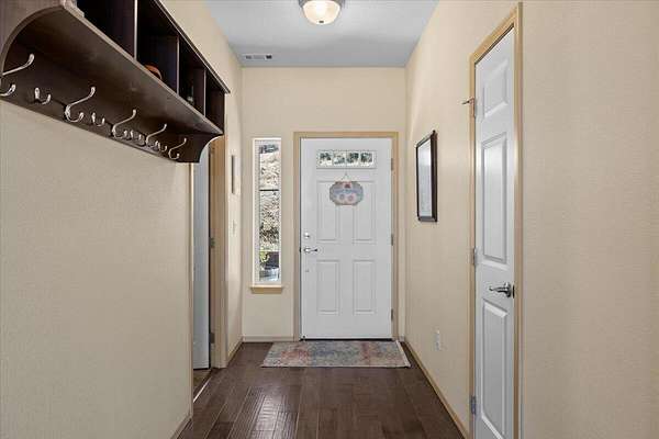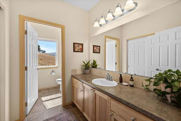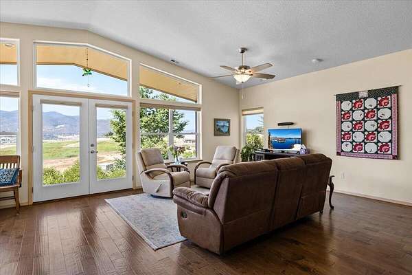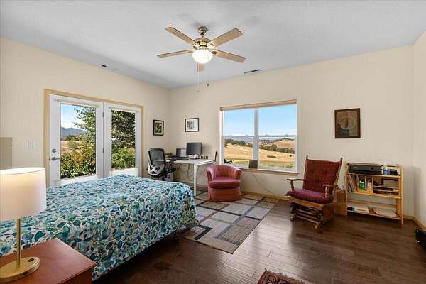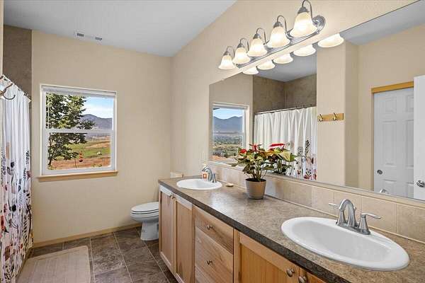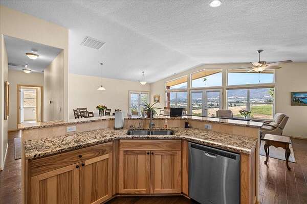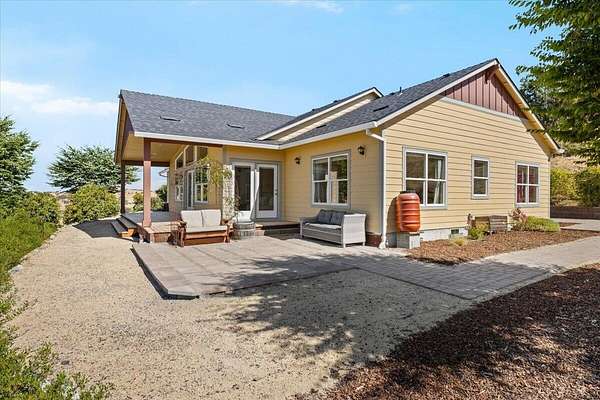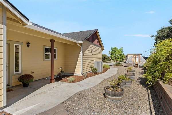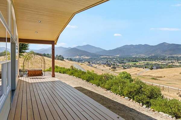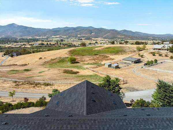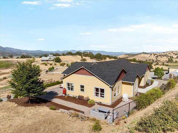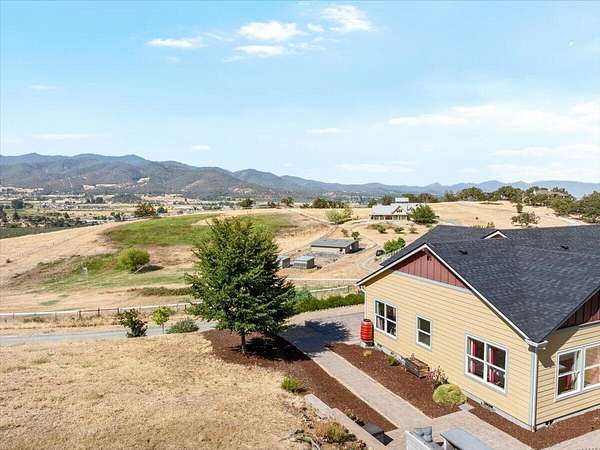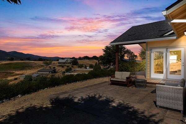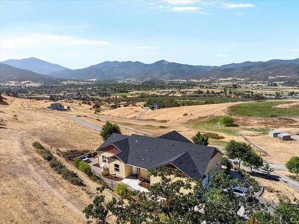 Panoramic mountain and valley views grace this light-filled single-level home minutes from East Medford, Talent, and Phoenix. Floor-to-ceiling windows in the vaulted great room capture magnificent sunset views. The open kitchen with granite counters, stainless appliances, breakfast bar, and walk-in pantry flows into the sunny great room, with access to two patios for easy indoor-outdoor living. Four bedrooms provide flexibility for family, guests, or home offices. The primary suite includes a patio with space for a hot tub. Light, neutral colors and cathedral ceilings create an airy feel; engineered wood flooring in living areas and bedrooms adds warmth and ease. A large laundry room with sink and storage, good well (recent flow test available), low-maintenance landscaping, greenhouse, and RV parking with power nearby make this home practical and inviting. New roof in 2025! Situated on 2+ acres in an upscale neighborhood, it's the perfect blend of privacy, space, and convenience.