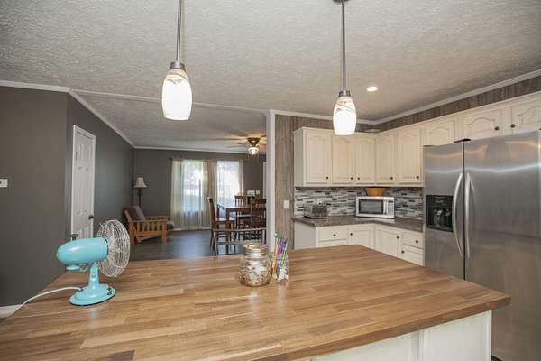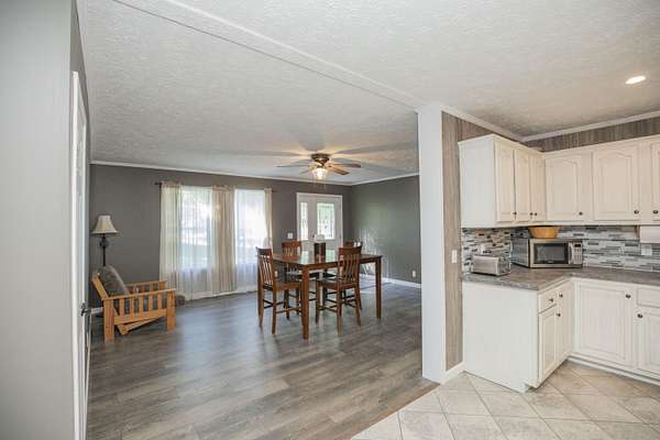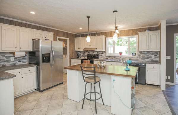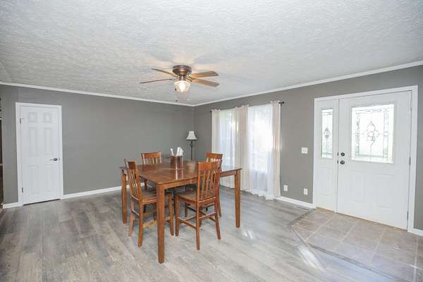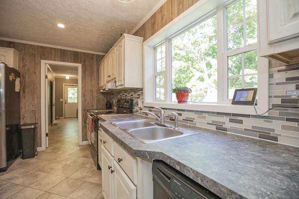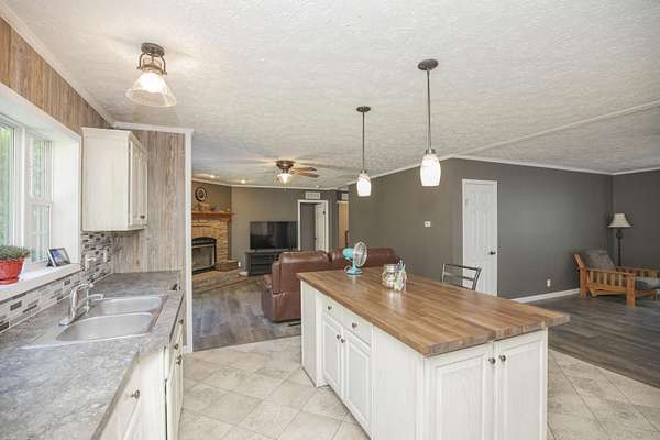 Tucked away at the end of a quiet road, this cozy four-bedroom, two-bath home welcomes you in. Step inside to an easy flow between the kitchen, dining, and living areas perfect for everyday moments or gathering. The master suite offers space, while new laminate floors, fresh paint, and updated sheetrock give the entire home a crisp, refreshed feel. The kitchen shines with new countertops and plenty of room to make your favorite meals. Out back, a porch looks out over a private yard made for morning coffee or starry nights. With nearly four acres to stretch out on, a 4-bay garage, and a handy storage shed, there's room for hobbies, toys, and dreams. Just minutes from town but a world away from the noise, it's the kind of place where you can breathe deep and slow down.