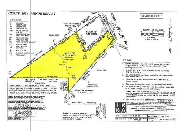 S 3 T 6 R 9 18.0 AC M/L BEING PARCEL A OF CROFT CORRECTIVE MINOR REPLAT 2024 (ORB 844/297) BEING PART OF ORB 817/420 WD FR HENDRIX/BULGER MAP 133