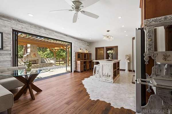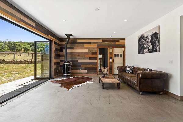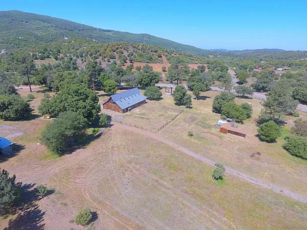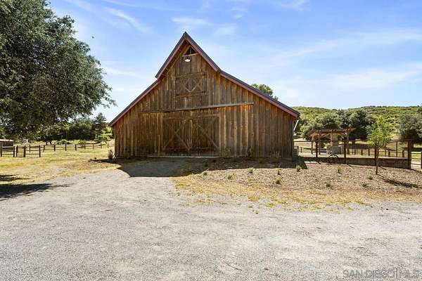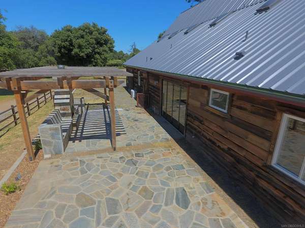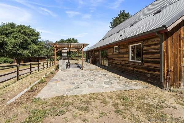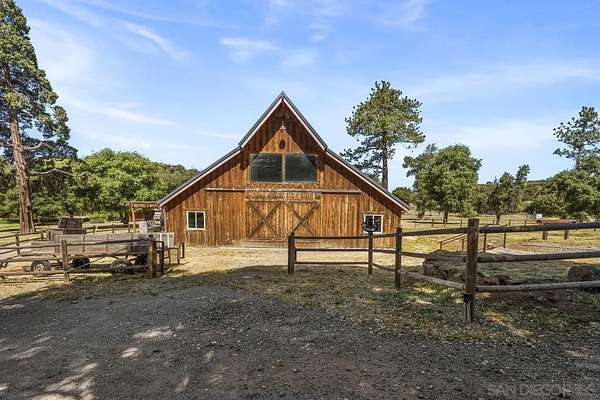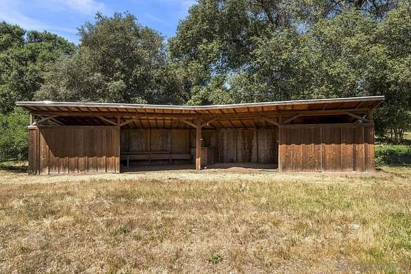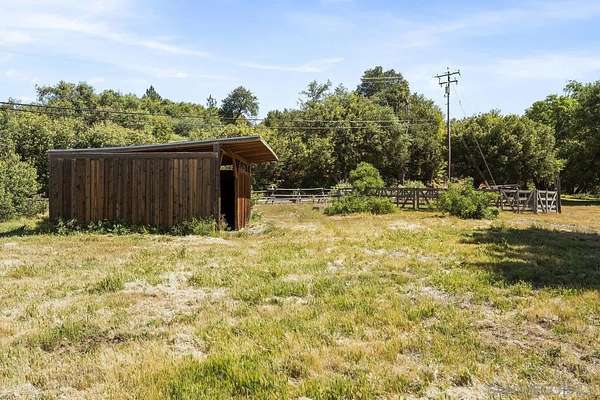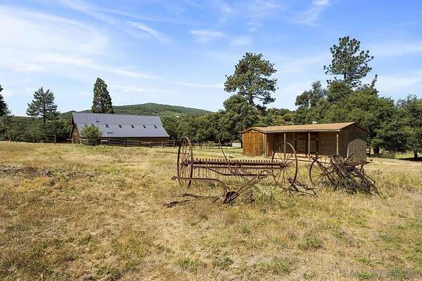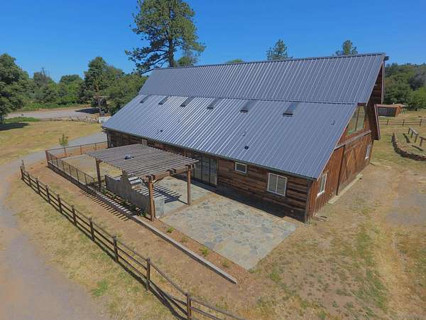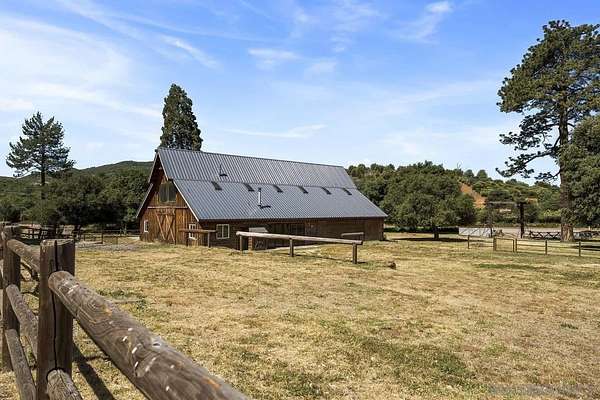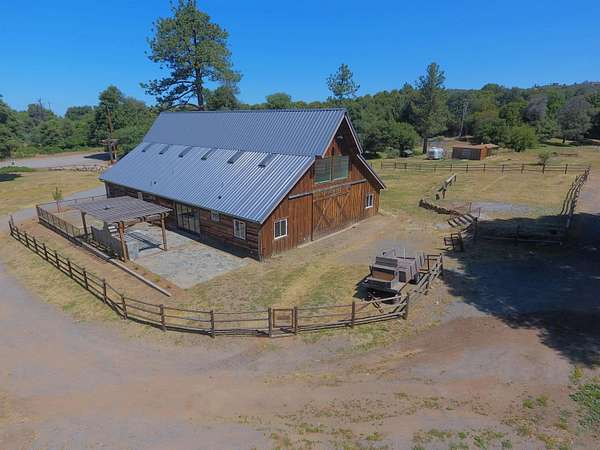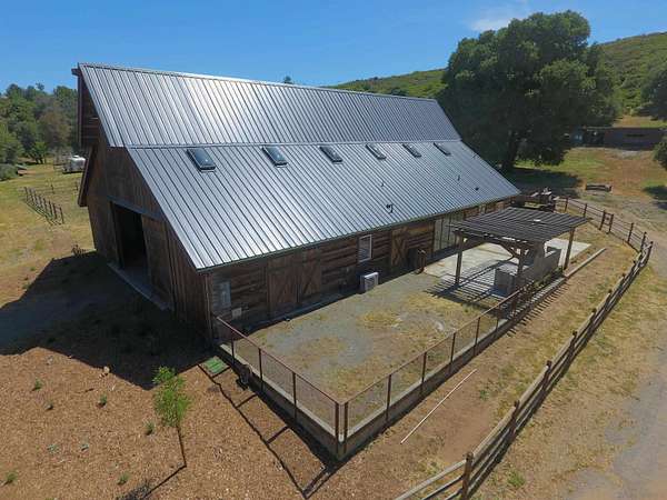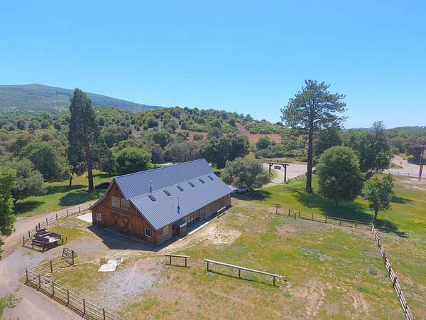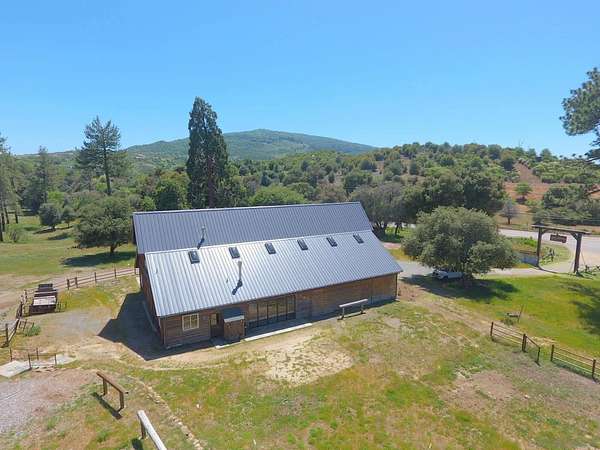 Discover the perfect blend of rustic charm and modern luxury on this stunning 27-acre barndominium-style estate, surrounded by mature oaks and redwoods. With over 5,000 sq ft of potential living space, the freshly renovated interior features high-end finishes in the kitchen and bathrooms, seamlessly blending natural elements with artistic design. Multiple outbuildings provide flexible options for livestock, storage, or workshop use. The land offers flat, usable areas ideal for horse facilities such as corrals and round pens, with available fencing in place. A spacious outdoor patio with a custom stone fireplace creates an inviting space for entertaining or relaxing under the stars. Whether you're looking for a private residence, equestrian retreat, or multifunctional compound, this property offers it all-including a large garage/shop with potential as an event venue or additional living space. The possibilities are endless on this rare and versatile property.