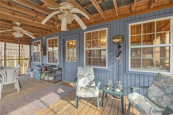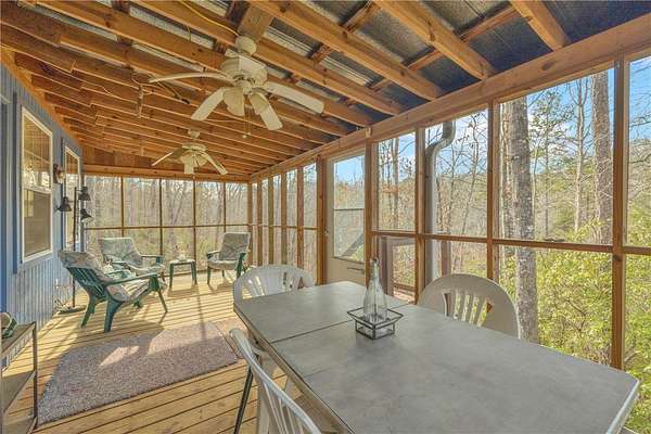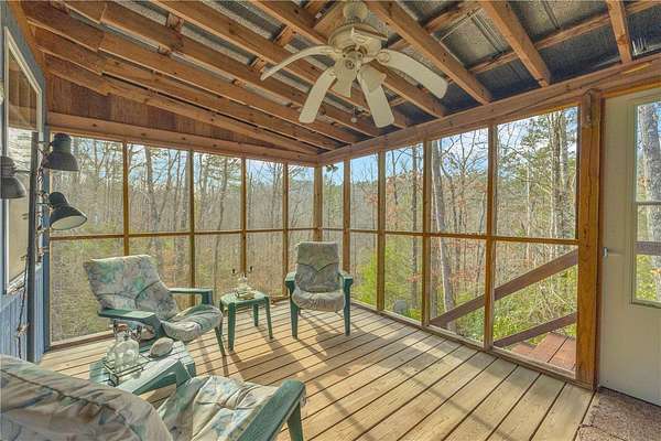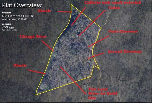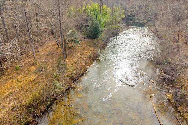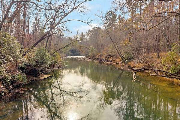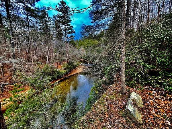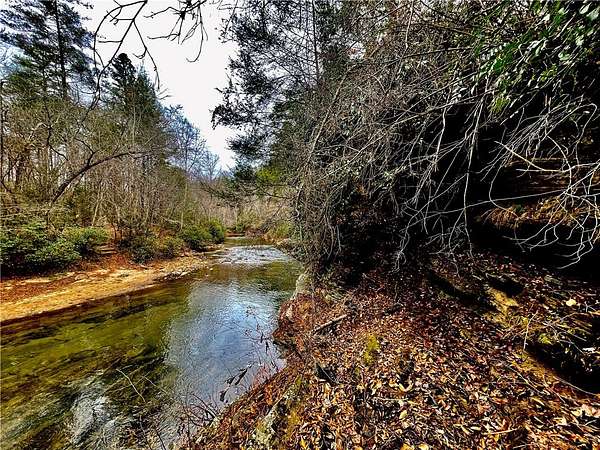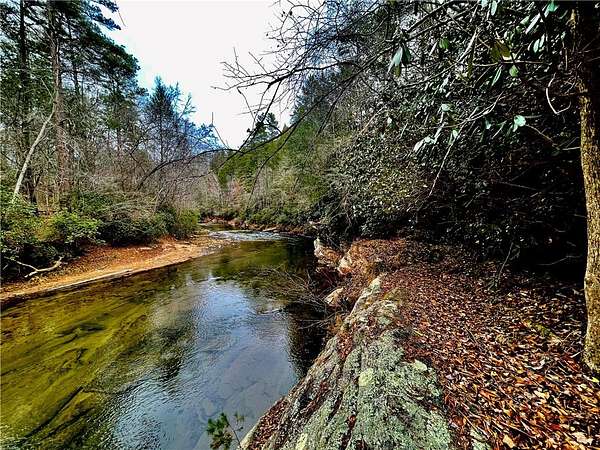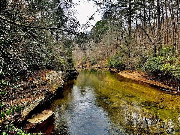 Situated on 7.99 unrestricted acres along the Chauga River, this exceptional property offers over 1,000 feet of river frontage and a rare combination of natural beauty, privacy, and versatility. A charming two-bedroom, one-and-a-half-bath hunting and fishing cabin, completed in 1998, serves as an ideal base camp or temporary residence while you build your riverfront dream home. The land features a remarkable variety of river settings, including a dramatic cliff face with a spring-fed waterfall flowing into the river, as well as expansive, level areas that provide excellent additional build sites just downstream from the existing cabin. Two established driveways allow for easy access and future expansion, making this property well-suited for multi-family or multi-generational use. Near the second build site, a dedicated fish-fry and gathering structure creates the perfect spot for hosting family, friends, and events along the fast-flowing river. Ideal for fishermen, hunters, whitewater kayakers, and outdoor enthusiasts, the property is extremely private and located near the end of a private road. Trails crisscross the land, with abundant mountain laurel, Oconee Bells, and mature hardwoods throughout. The cabin features a large open floor plan on the main level, a pantry and half bath, and a sun porch that opens to a screened porch with seasonal views up and down the Chauga. Upstairs are two bedrooms and a full bath. The cabin has propane gas heat, window A/C units, and a roof replaced in 2012, and the property is served by a drilled well with excess capacity for future expansion. Located close to Clemson University (35 minutes), Sumter National Forest, the Wild and Scenic Chattooga River, and all the great features Upstate South Carolina can offer. If you are seeking a truly unique river property offering privacy, multiple build options, and a beautiful mix of flat and rocky terrain, this is a must-see opportunity.