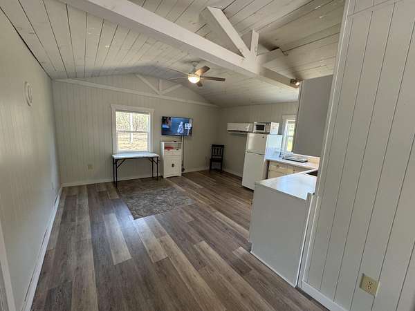Nestled on a private and beautifully wooded 1.6-acre homesite, this unique property offers the perfect blend of peaceful country living, modern upgrades, and future expansion potential. Surrounded by mature trees that have been professionally thinned and trimmed, the lot provides privacy while still offering ample space to build a primary residence, guest home, or additional structures. This is a charming, small home. The interior showcases a warm and inviting aesthetic, all remodeled recently creating a cozy yet refined living space. Many recent upgrades include new high efficiency hvac split system, new hot water heater A complete list of recent major upgrades are provided in the attached documents. Outdoor features further enhance the property's versatility, including a dedicated RV/camper parking space with water hookup and 50-amp power, making it ideal for guests or additional living flexibility. The property also includes a functional 12x20 storage shed and a private well house, both recently improved. Bonus: The sale includes 2 refrigerators, microwave, flat screen tv, and washer/dryer, and yard tools making this a turnkey opportunity for a primary residence, weekend getaway, or investment property. This is a rare opportunity to own a private acreage property with modern upgrades, RV accommodations, and room to expand--all in a serene, natural setting.