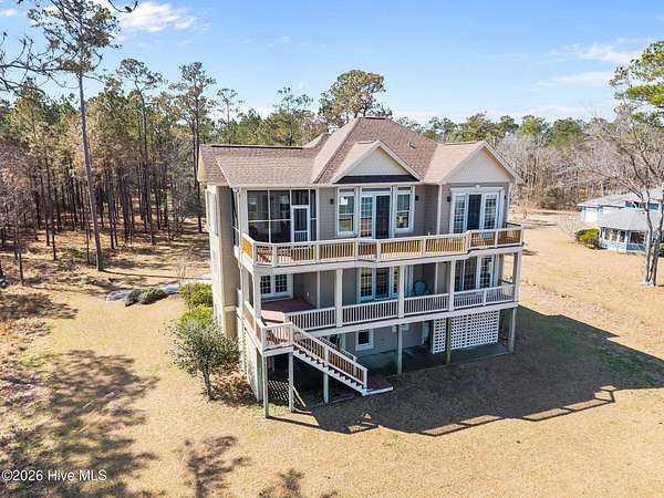 This stunning waterfront property in Beaufort, North Carolina, offers an unparalleled opportunity to experience life on the Neuse River and Pamlico Sound. With four spacious bedrooms, three and a half baths, and a convenient two-car garage, this well-maintained home is perfect for those seeking both comfort and elegance. Nestled within the peaceful Sandy Point Subdivision, this property encompasses 1.67 private acres and boasts an impressive 123 feet of sandy beach, where you can enjoy kayaking, fishing, and picturesque sunsets right in your backyard. Step inside to discover a bright and airy open floor plan, enhanced by an abundance of natural light flowing through large windows. The gourmet kitchen features white shaker-style cabinets, sleek stainless steel appliances, and gorgeous granite countertops, making it an ideal space for culinary enthusiasts. Additional highlights include an elevator servicing all three floors, a bonus room, and a dedicated office that overlooks the breathtaking waterscape, perfect for both work and play. Outside, the expansive decking provides ample space for entertaining and relaxation, while the outdoor shower adds a touch of convenience after a day spent on your private beach. The new roof installed in 2025 and the efficient irrigation system are just a few of the thoughtful details contributing to the home's functionality and aesthetic appeal. Surrounded by nature, this waterfront community ensures both tranquility and recreational opportunities, including access to the nearby South River Boat Ramp. Don't miss out on this rare chance to own a slice of paradise in Beaufort!