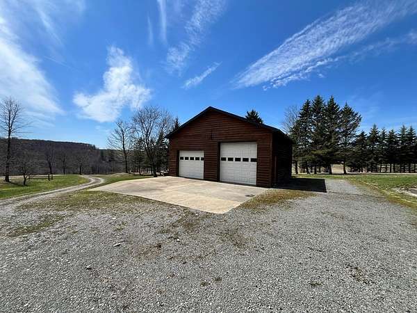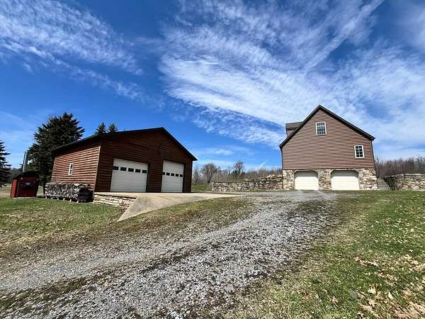 Welcome to this picturesque two-story home set on a secluded 2.5-acres, offering beautiful views and peaceful surroundings. This property features an attached two-car garage along with an additional two-car garage/workshop perfect for hobbies, storage, or additional workspace. Inside, the first floor master suite provides convenience and comfort, complete with a spacious en-suite bath. The heart of the home is the open-concept kitchen, dining, and family room, ideal for entertaining or everyday living. A large living room just off the foyer adds even more space to relax and gather. Upstairs are two additional bedrooms, a full bath, and an oversized hallway that offers flexible space for a sitting area, office, or game room. The finished basement includes a family room with a wood stove. Secluded setting with a private drive just off a township maintained road. Those looking to fully enjoy and maintain the property, a Kubota tractor and 4-wheeler are available for purchase.