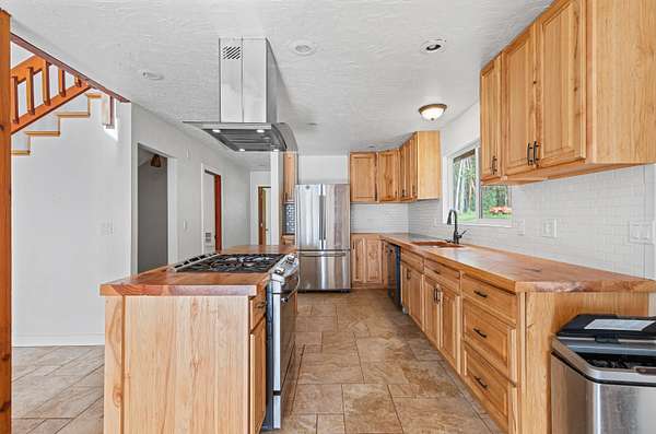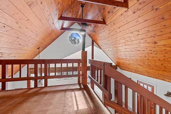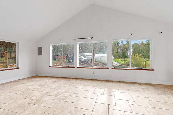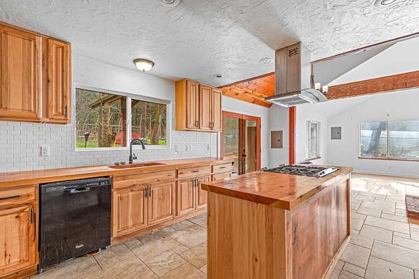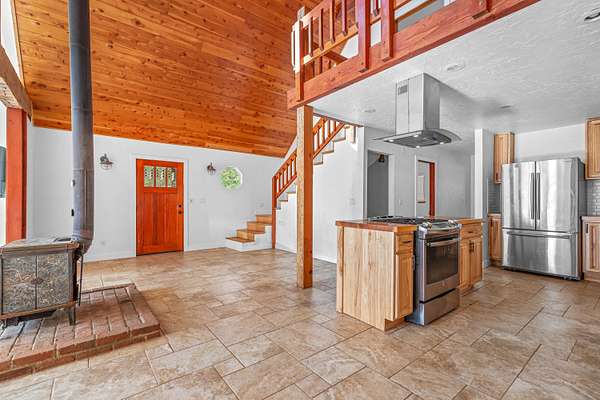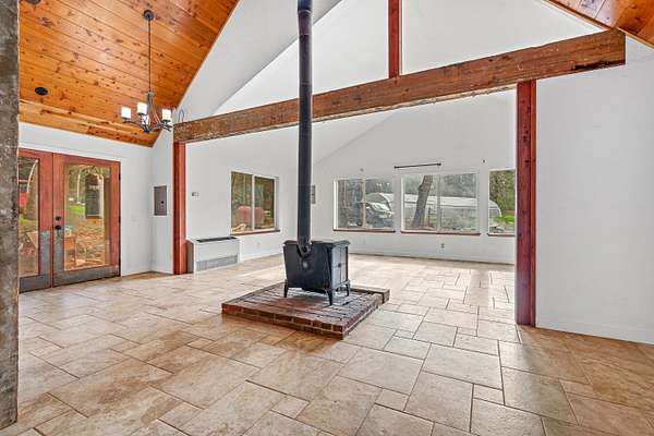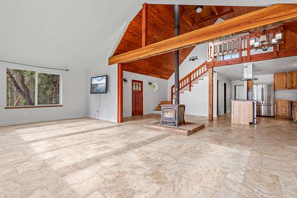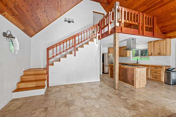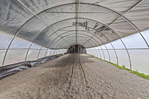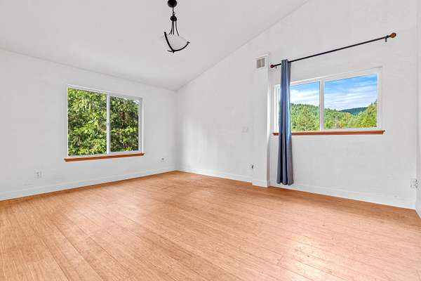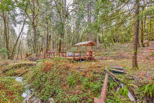 Beautiful and lush EFU homestead! Chalet style home with vaulted cathedral ceiling, huge windows letting in natural light and views of the pasture and forest landscape. Staircase to the loft leads to upstairs en suite! Fully fenced and private. A short hiking path downhill brings you to a lovely creek with a wooden deck platform for a yurt. Large metal greenhouse. 3 nice shed type outbuildings and an insulated storage container. Seclusion between the mountains and civilization, beautiful views of the night sky without light pollution, and easy access to the freeway only 4 miles away.
