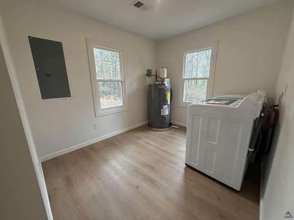 Completely updated and truly move-in ready! This 3 bedroom, 2 bathroom home is packed with NEW--offering peace of mind and modern comfort on a private 4.26-acre lot. Recent updates include a brand-new roof, new HVAC system, new water heater, double-pane windows, all new flooring throughout, and a newly built back deck perfect for outdoor enjoyment. The kitchen shines with granite countertops, stainless steel appliances, recessed lighting, stylish backsplash, and abundant cabinet space. The spacious owner's suite features a walk-in closet and a spa-like bathroom with double sinks, a tiled stand-up shower with glass doors, and a separate toilet area. The guest bathroom offers a tiled tub/shower combo, and secondary bedrooms are generously sized. Washer and dryer convey with the home. To add to the speciality this is a split floor! With thoughtful upgrades from top to bottom, this home offers modern finishes, functionality, and acreage--making it a rare find. Ease your mind knowing the big-ticket items are already done. NEW, NEW, NEW!