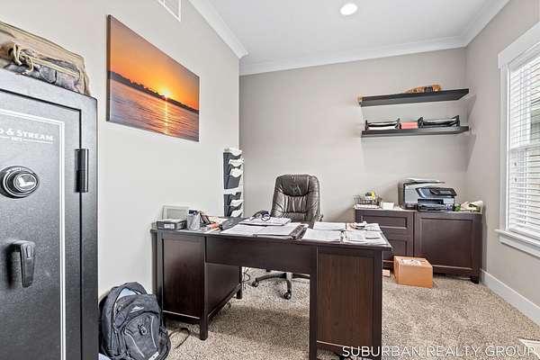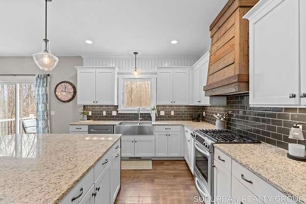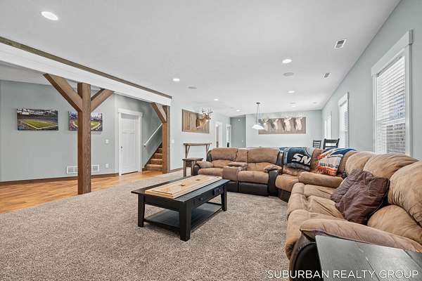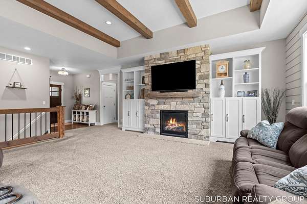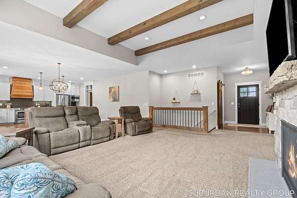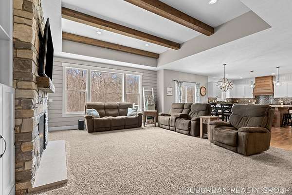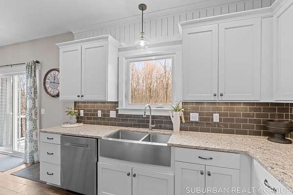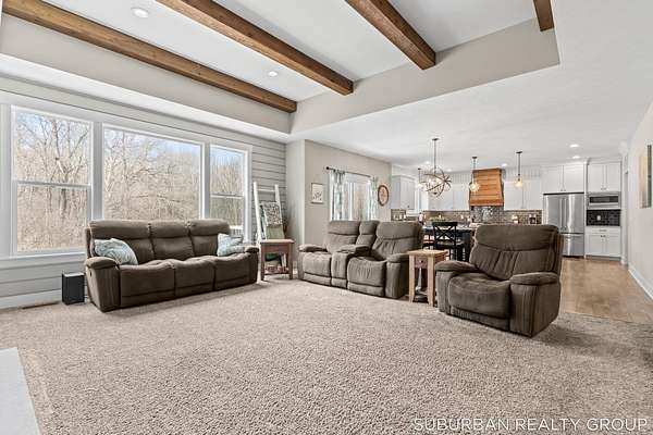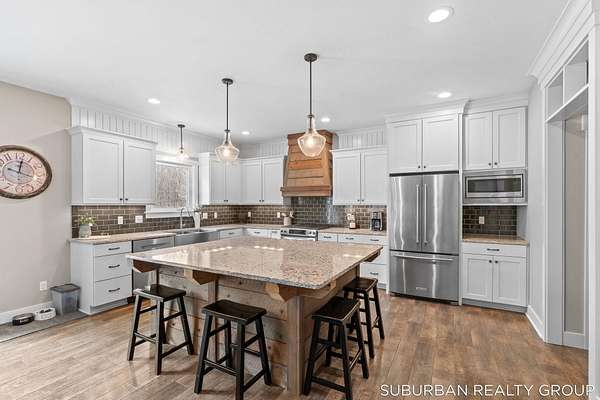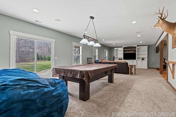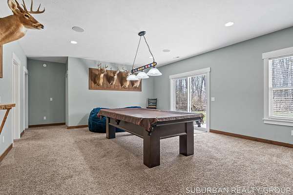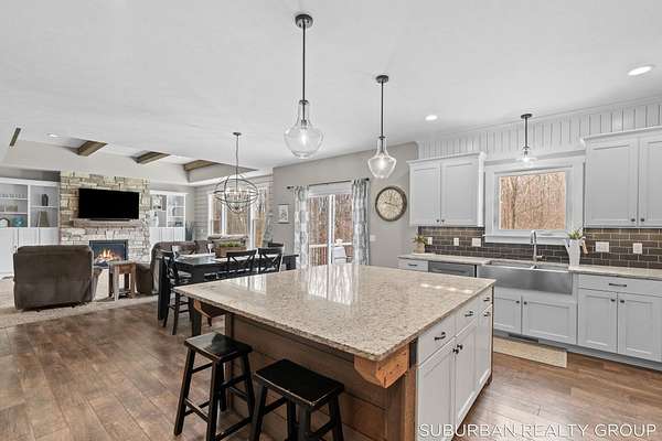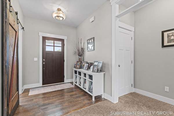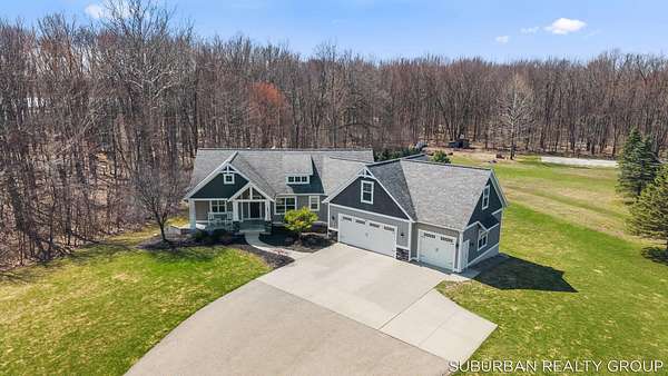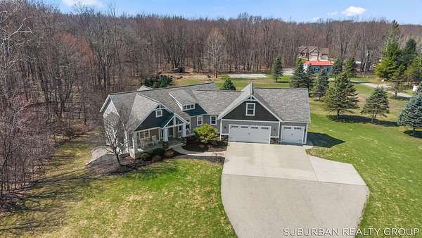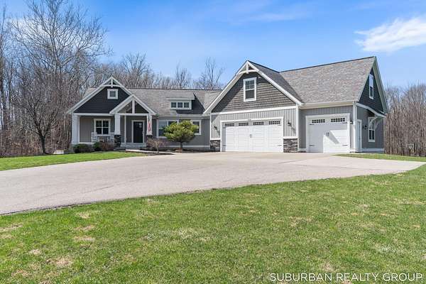Hudsonville custom home with acreage! Nothing like this available. The layout of this home is well planned with 2 beds and a full bath in the 1/2 story, a primary en suite with large walk in closet and tile shower on the main and two additional bedrooms and a full bath on the lower level. You will notice the exceptional custom wood detail throughout. The back entry offers an organized mud area with enclosed lockers, a separate coat/shoe closet, guest bath, and laundry with great storage. The kitchen is a cook's dream with plenty of space to work, a large center island, and organized pantry. The wood ceiling detail is displayed in the kitchen and primary suite. Work from home? No problem. The office is situated just off the front entry. A walk out basement is great for a fun night in with a space large enough for pool, ping pong, and socializing. And it has a wet bar with full refrigerator. Enjoy the hot tub on your private three acres and relaxing on the big country porch. For all of you who want more...there is a 30x40, heated barn with water and electric. Hold all your toys, hold graduation parties, etc all on your own property. You can have everyone over for a night of basketball on the court or sit by the built in fire pit. This home is ready for you to LOVE! Bonus of natural gas and city water! Call today for your private showing. You won't be disappointed!