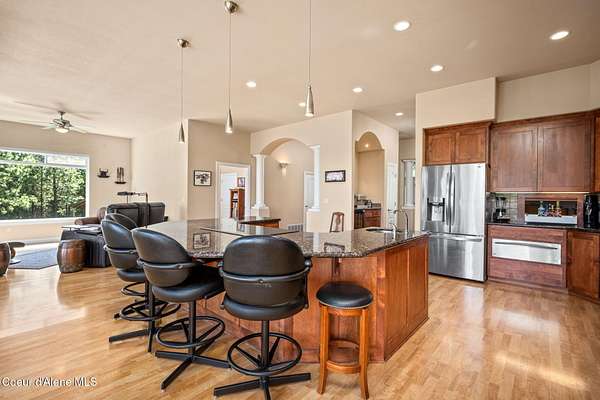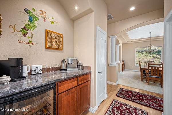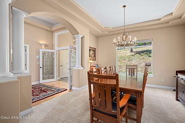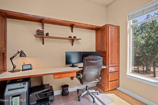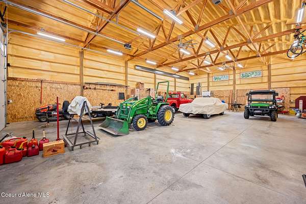 Nestled south of the Spokane River on 16.29 acres, this 2948 sq ft, 3-bed, 3.5-bath home (built 2003) is a serene oasis just 23 min from Coeur d'Alene's Sherman Ave, 13 min from Post Falls, and 40 min from Spokane Airport. Enjoy a grand double-door leaded glass entry, hardwood floors, 10' ceilings, and a gourmet kitchen with granite counters, cherry cabinets, and a large island. The primary suite stuns with a walk-in closet, jetted tub, and two-sided gas fireplace. Relax on the trex deck with million dollar views or in the 3-person spa. A 40x60 shop and 12x60 lean-to, spray foam insulation, and 220v power sits on a concrete slab. Updates include a 2019 metal roof, Hardie board siding, and asphalt driveway. With an elevator, zero-step entries, 4-car garage, 3-zone sprinklers, and a security system, this home is also wired for generator that offers luxury and accessibility. All appliances stay! Low taxes with timber exemption. Your dream retreat awaits! Exquisite Private North Idaho Estate - Your Ultimate Sanctuary Awaits! Escape to a world of unparalleled luxury and tranquility with this breathtaking 2,900 sq ft, 3-bedroom, 3.5-bathroom masterpiece (Sitting on a 2,882 sq ft basement!), nestled on 16.29 acres of pristine North Idaho landscape, just south of the Spokane River. Built in 2003 and meticulously updated, this estate offers a harmonious blend of modern sophistication, accessibility, and rugged outdoor beauty. Perfectly positioned for convenience, you're only 23 minutes from the vibrant Sherman Avenue in downtown Coeur d'Alene, 13 minutes from the charming heart of Post Falls, and a mere 40 minutes from Spokane International Airport. Whether you seek a private retreat, a family haven, or a versatile property for work and play, this home delivers it all. A Grand Arrival: As you approach through the automatic iron gate, a 1,200-foot asphalt driveway, newly paved in 2024, guides you effortlessly to the property. Designed for easy maintenance and snow plowing, the driveway features an extended trailer turnout, ensuring seamless access for vehicles of all sizes. The gate, operable by code or clicker, adds a layer of security and exclusivity to your private oasis. Beyond the gate, the sprawling estate unfolds, revealing meticulously maintained grounds, a 3-zone sprinkler system, and a charming fire pit area in the front yard - the perfect spot for cozy evenings under the stars. Architectural Elegance Meets Modern Comfort: Step through the double-door leaded glass entryway, a stunning prelude to the home's grandeur, and into a welcoming foyer with a tray ceiling and gleaming hardwood floors. A second French door adds an extra touch of sophistication, ushering you into a world of refined living. The open-concept interior, with 9' ceilings throughout, exudes warmth and spaciousness, enhanced by Hunter Douglas window coverings that frame breathtaking views of the surrounding landscape. The heart of the home is the gourmet kitchen, a chef's dream designed for both functionality and style. A large center island with a sink, seating for four (stools included), and granite countertops anchors the space, while cherry wood cabinets and a separate pantry provide ample storage. Adjacent, a cozy breakfast nook invites morning coffee with a view, and a formal dining room with a tray ceiling sets the stage for elegant gatherings. For wine enthusiasts, a dedicated wine bar with granite counters and a wine refrigerator adds a touch of indulgence. The living room, warmed by a gas fireplace, flows seamlessly onto a expansive rear deck crafted with low-maintenance trex decking and sleek glass-panel handrails. Here, you'll find a 3-person spa just steps from the primary bedroom, offering a private retreat for relaxation. A direct propane stub makes outdoor grilling a breeze, perfect for summer barbecues with family and friends. A Primary Suite Like No Other: The primary bedroom suite is a sanctuary of luxury, designed for ultimate comfort and ser